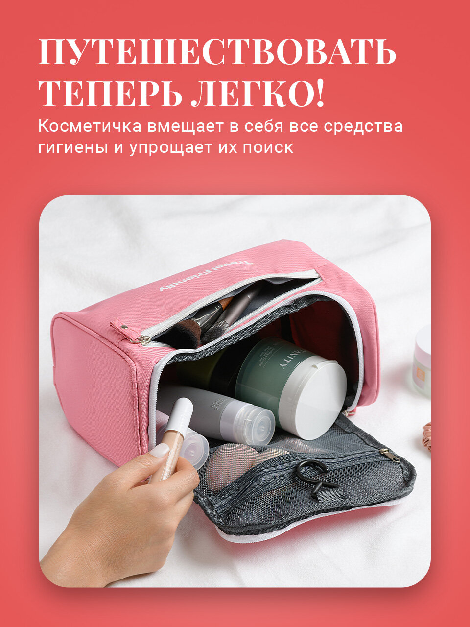 СохранитьКосметичка дорожная, Travel Friendly, Сумка косметичка с отделениями на молнии/ Несессер дорожный, Розовый интересное: