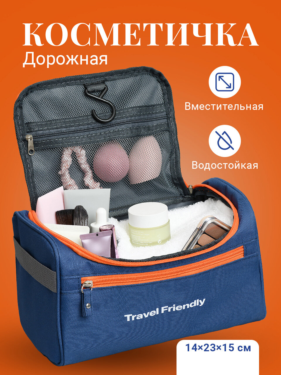 СохранитьКосметичка дорожная, Travel Friendly, Сумка косметичка с отделениями на молнии/ Несессер дорожный, Синий интересное: