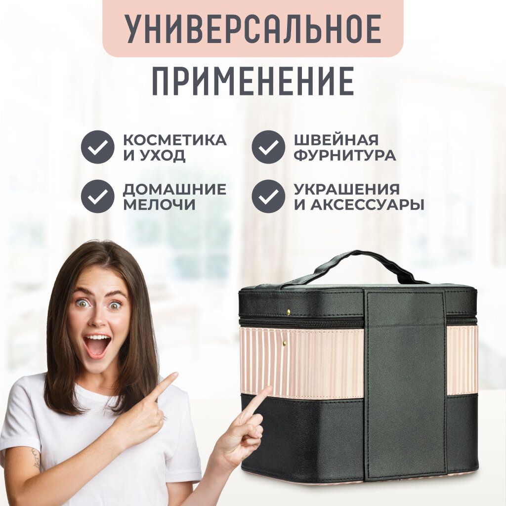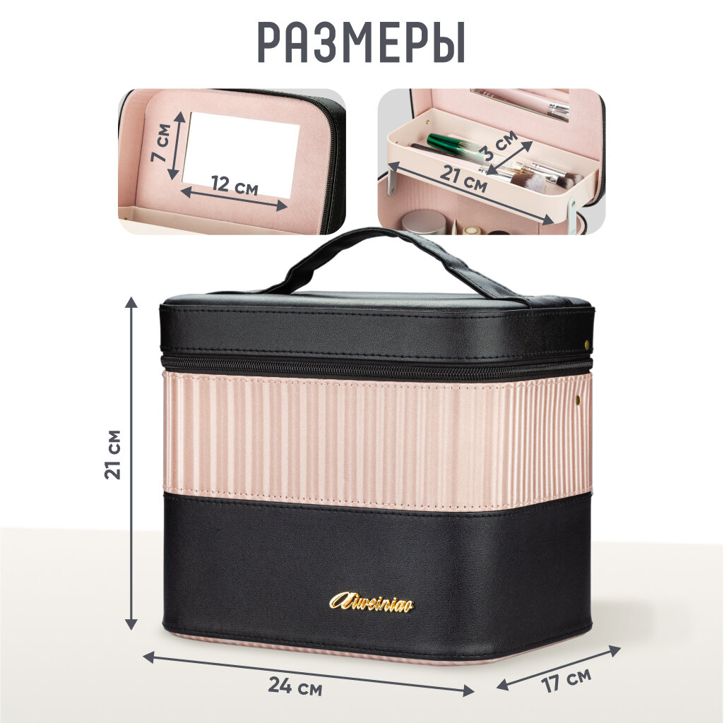 Косметичка женская большая, органайзер для косметики с зеркалом на молнии интересное: