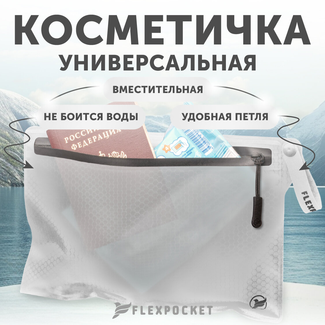 Косметичка водонепроницаемая на молнии с петлей, Flexpocket, Флекспокет, без принта