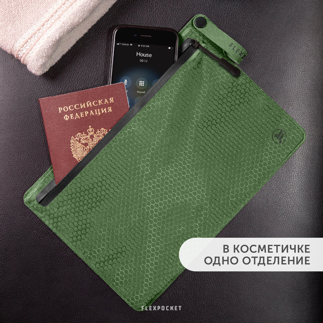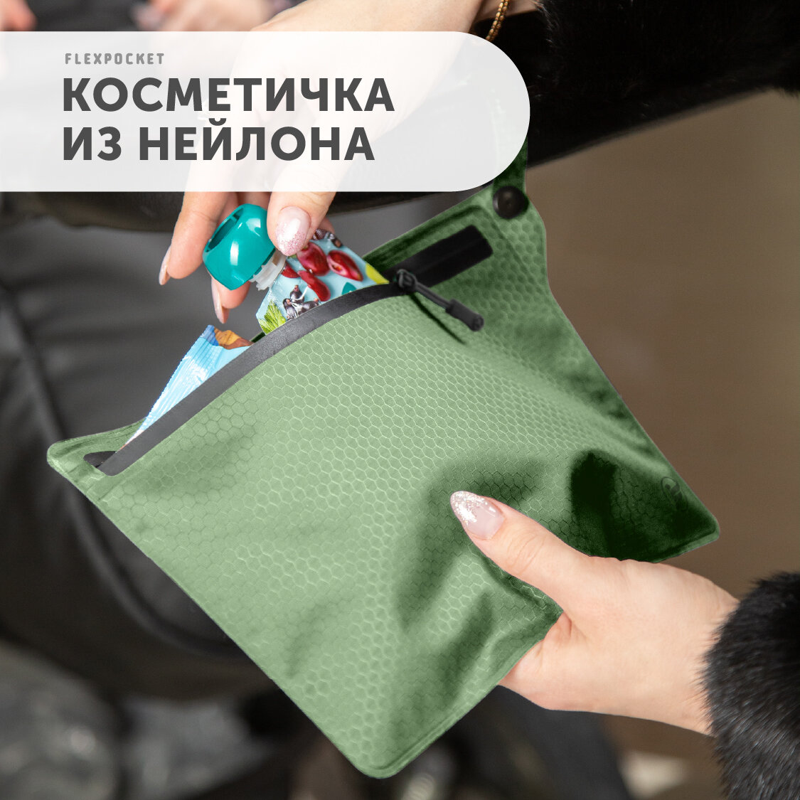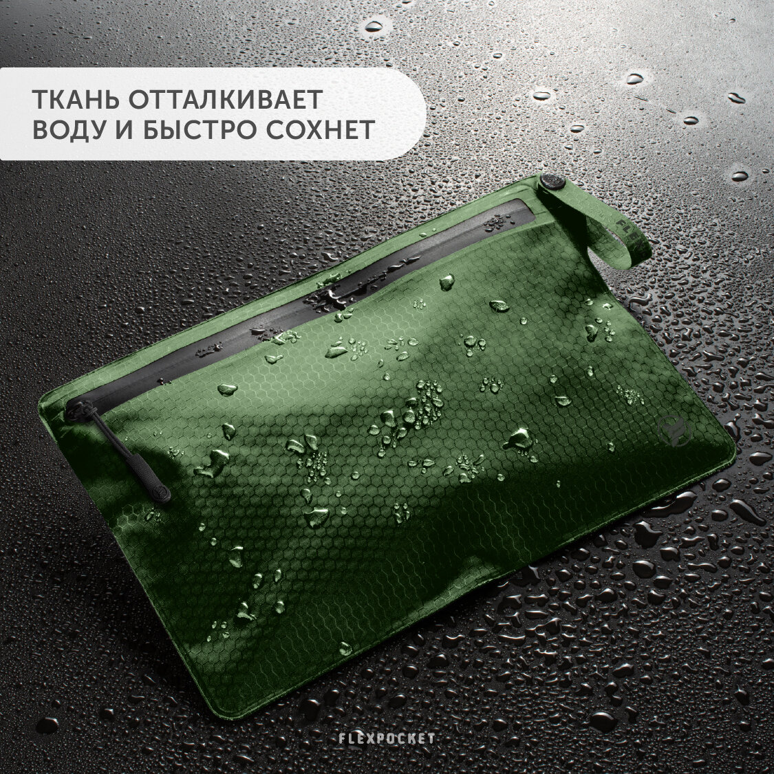 Купить Косметичка водонепроницаемая на молнии с петлей, Flexpocket, Флекспокет, цвет зеленый