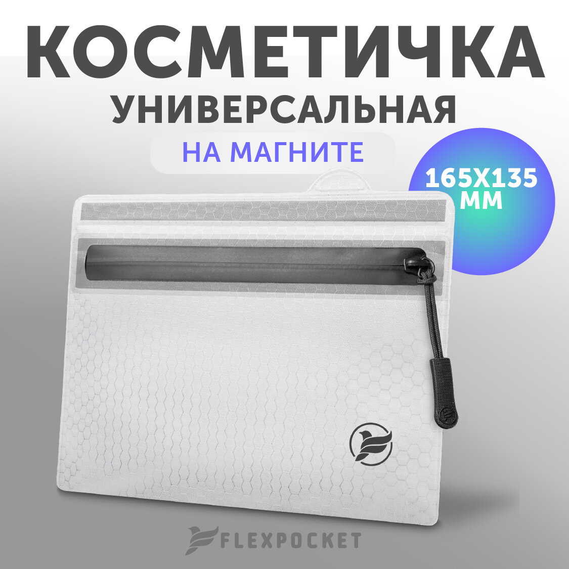 Купить Косметичка женская, органайзер для косметики, маленькая дорожная непромокаемая для бассейна душа путешествий FlexPocket, цвет белый