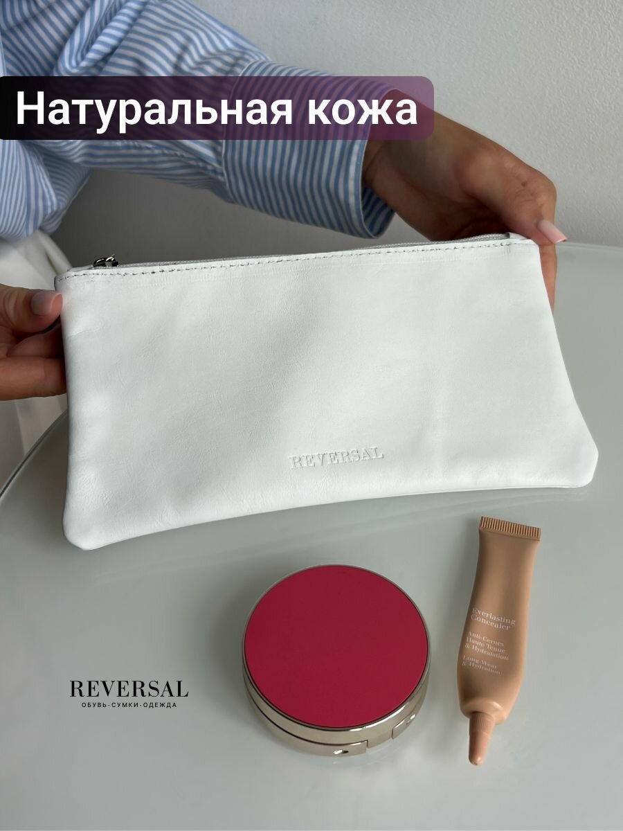 Косметичка натуральная кожа на молнии плоская,Reversal,8856R_Белый-матовый интересное: