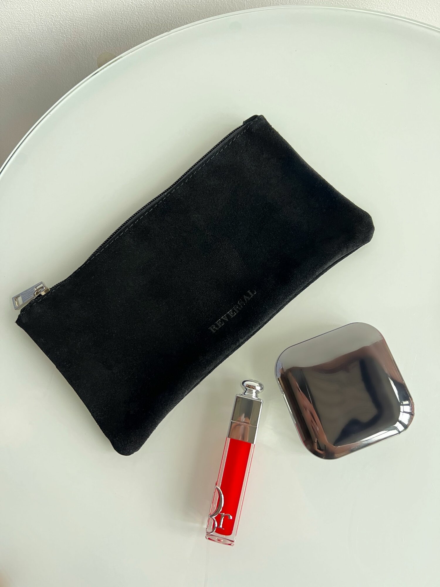 Косметичка натуральная замша на молнии плоская,Reversal,8856R_Черный-замша интересное: