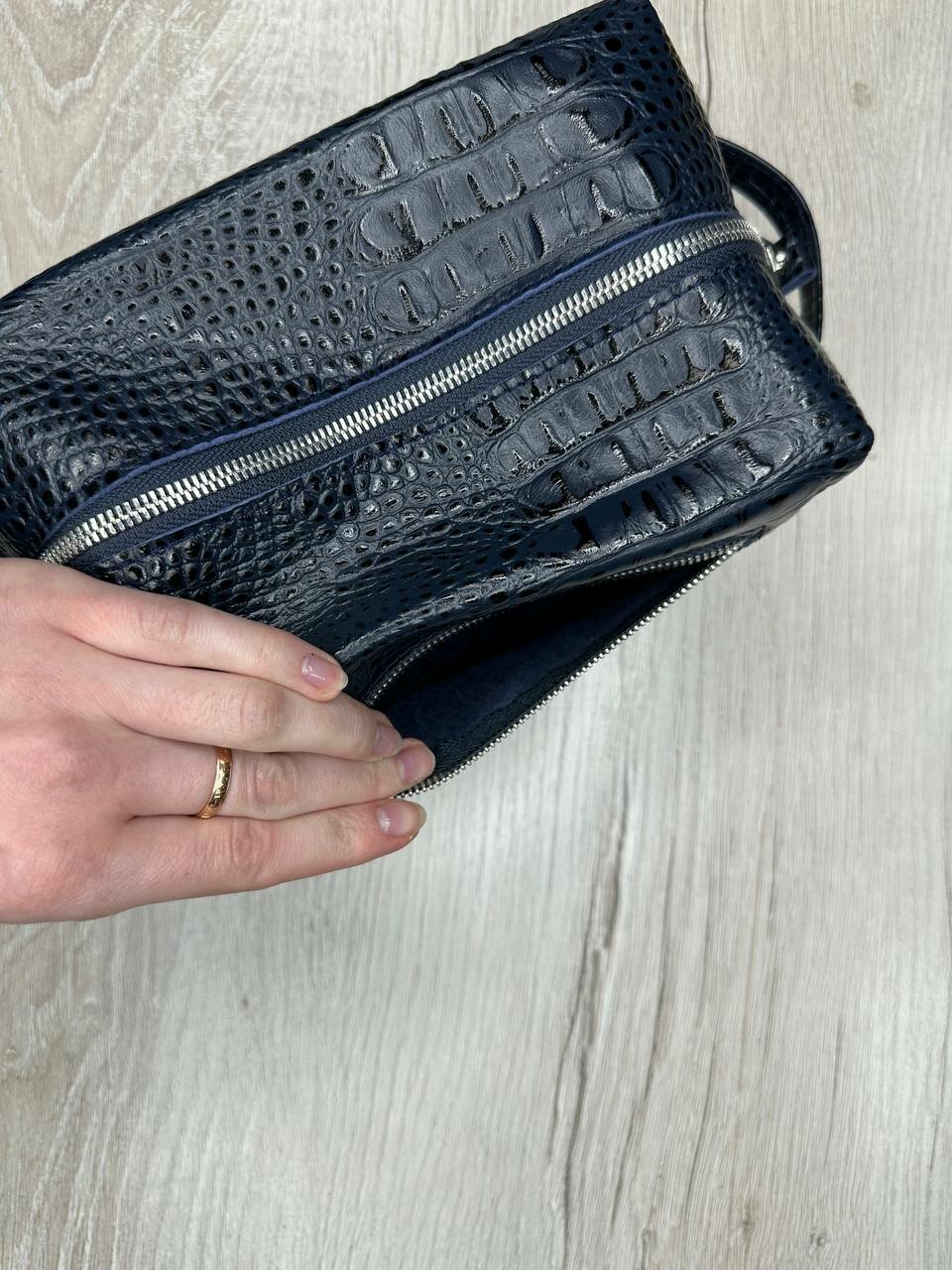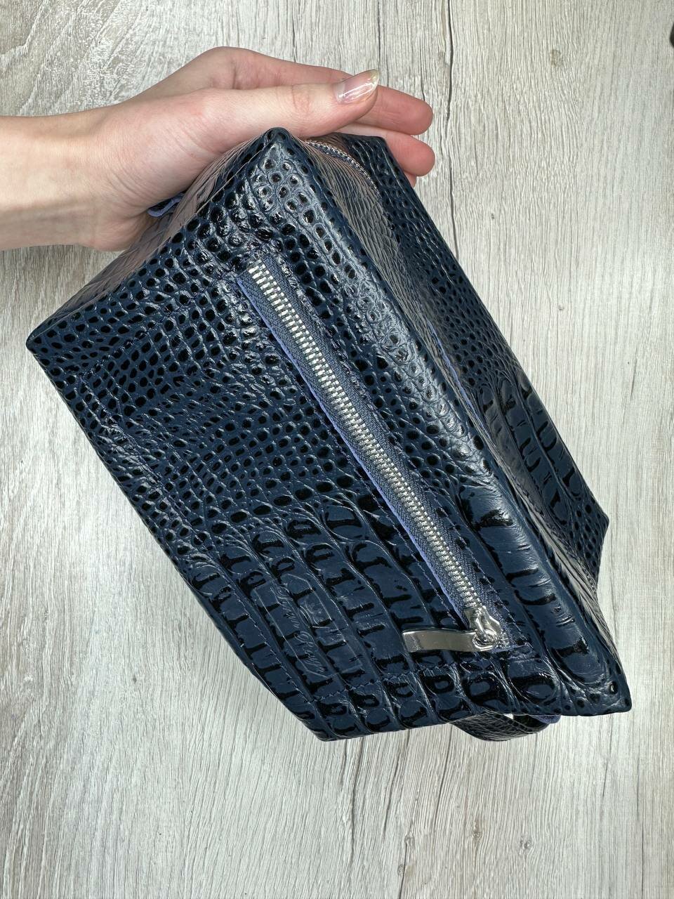 СохранитьНесессер кожаный кайман темно-синий/Косметичка дорожная большая из натуральной кожи/Органайзер женский мужской кожа интересное: