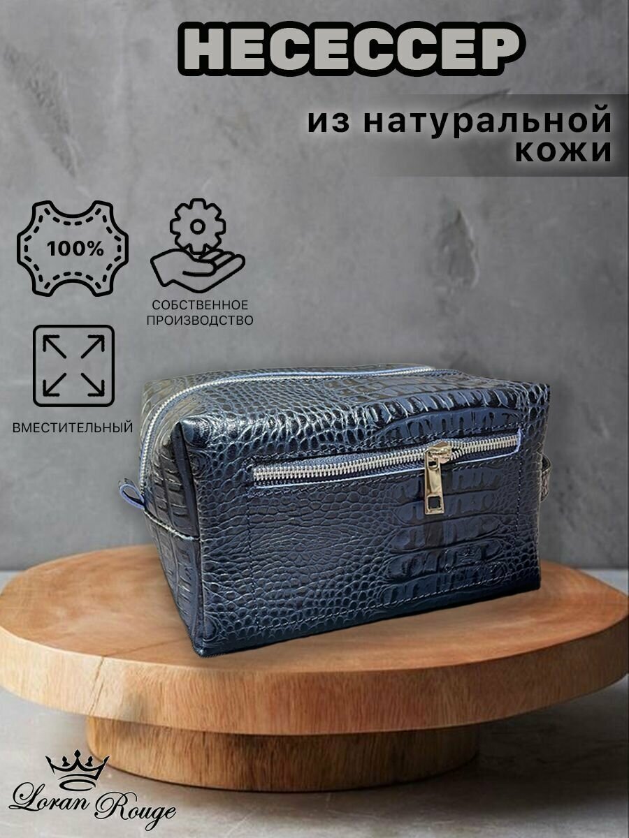 Купить Несессер кожаный кайман темно-синий/Косметичка дорожная большая из натуральной кожи/Органайзер женский мужской кожа
