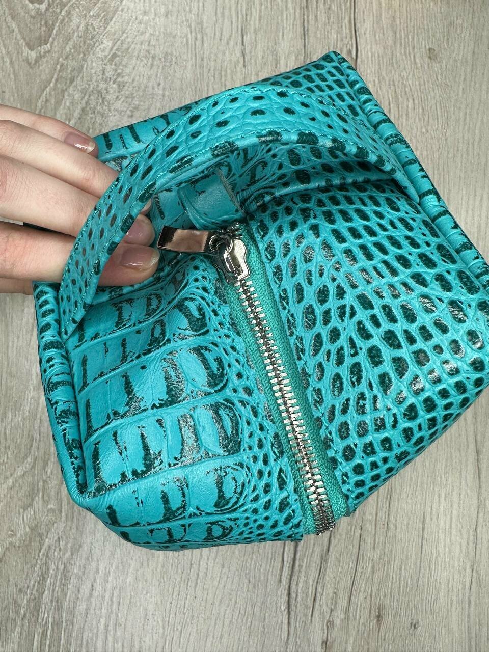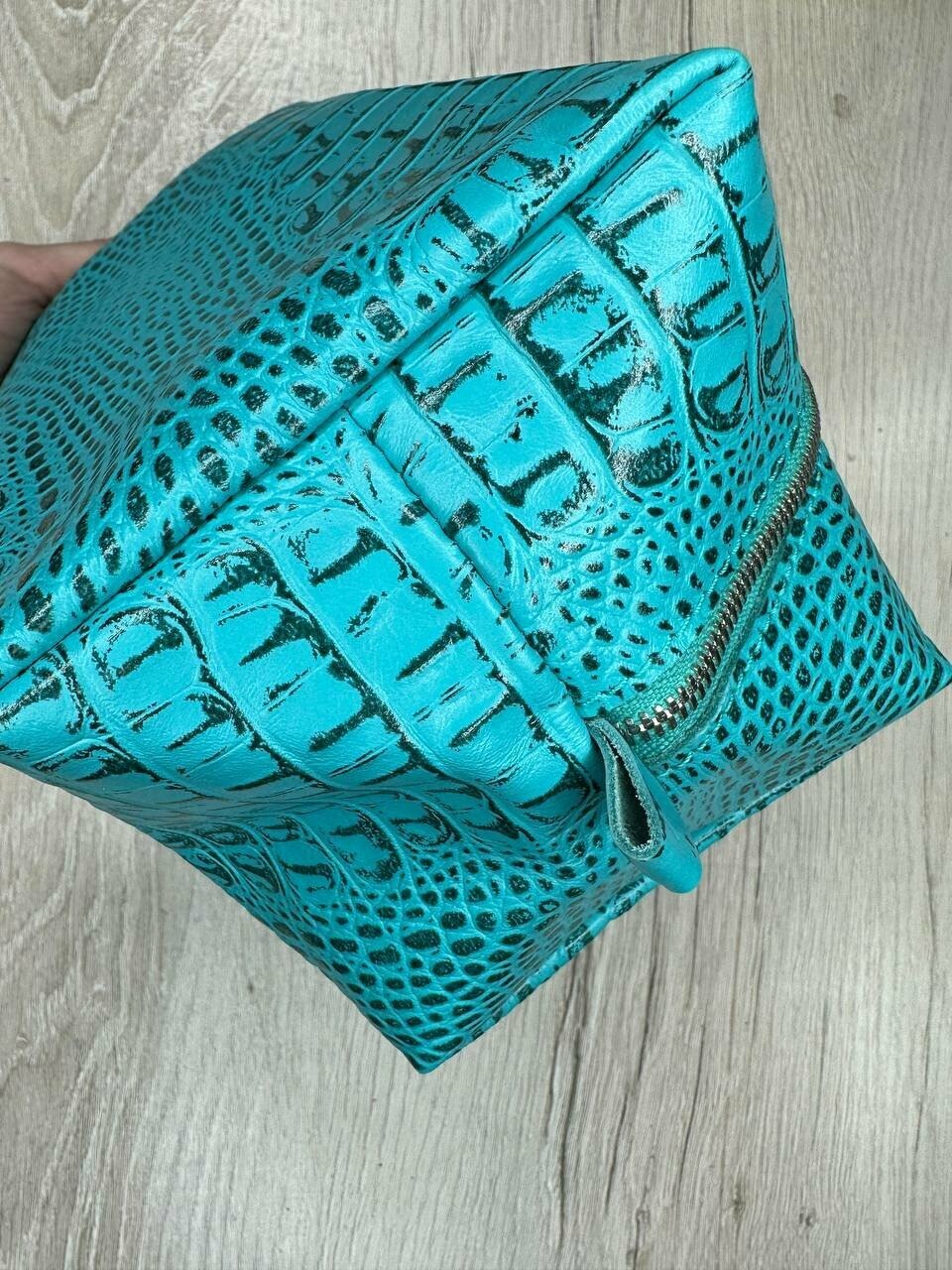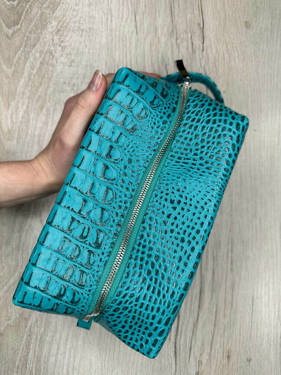 СохранитьНесессер кожаный кайман бирюзовый/Косметичка дорожная большая из натуральной кожи/Органайзер женский мужской кожа интересное: