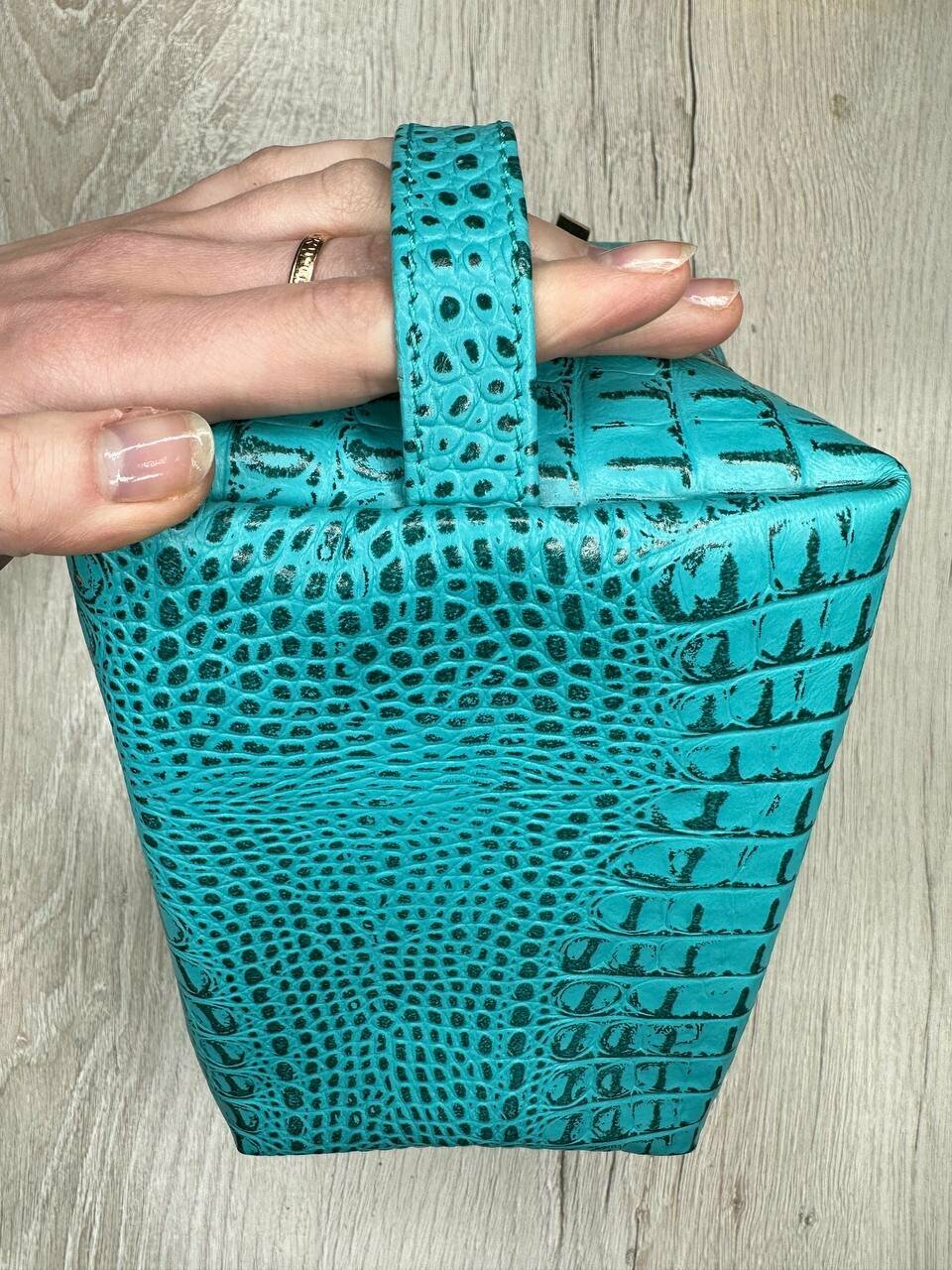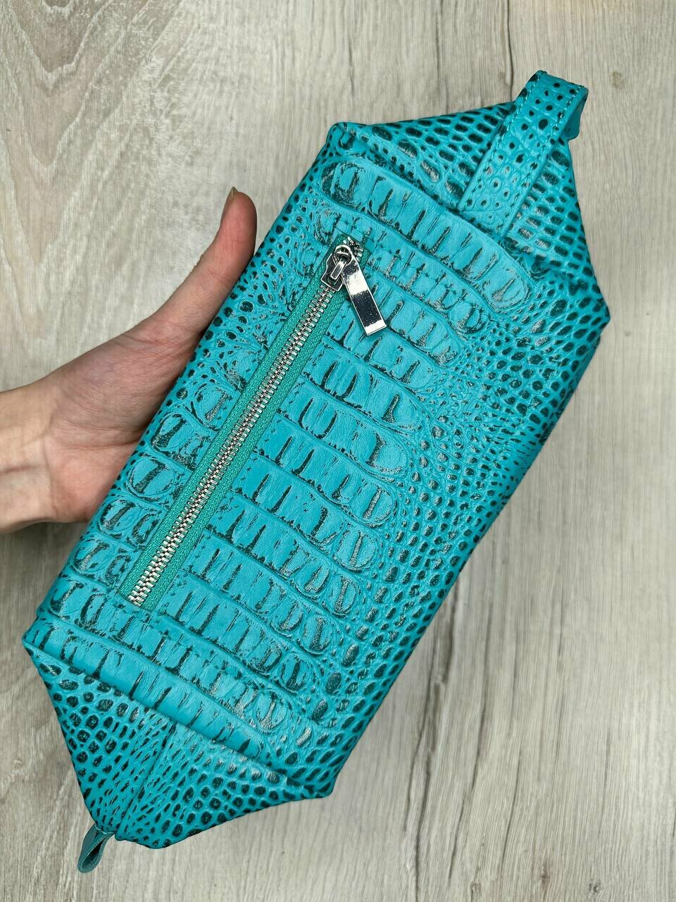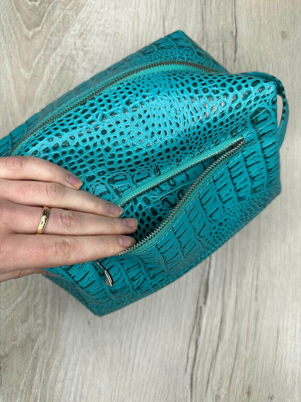СохранитьНесессер кожаный кайман бирюзовый/Косметичка дорожная большая из натуральной кожи/Органайзер женский мужской кожа интересное: