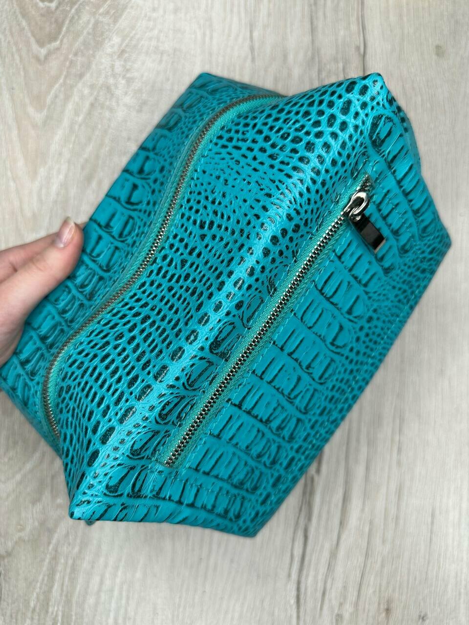 Купить Несессер кожаный кайман бирюзовый/Косметичка дорожная большая из натуральной кожи/Органайзер женский мужской кожа
