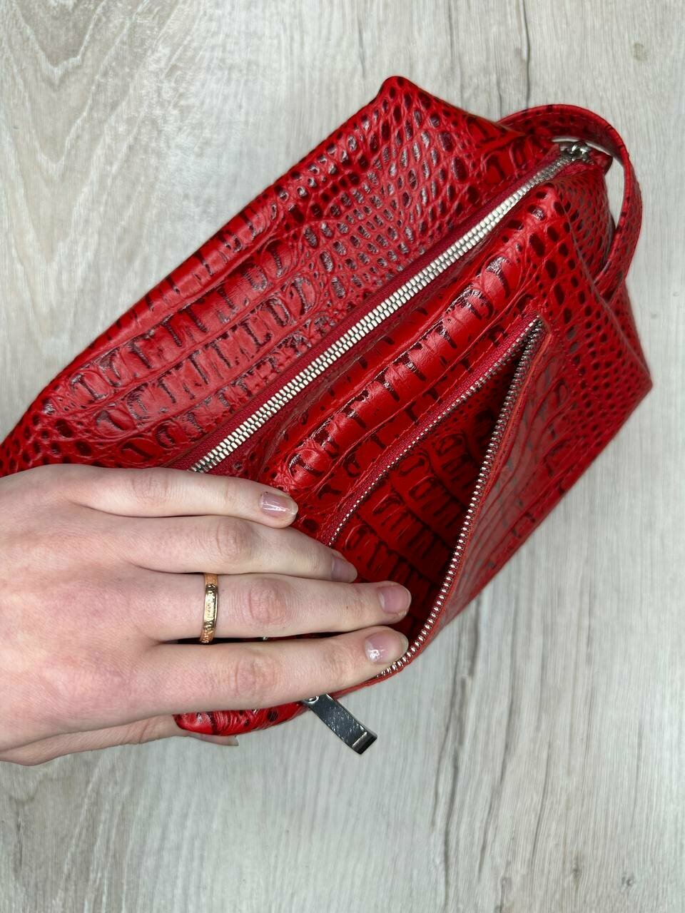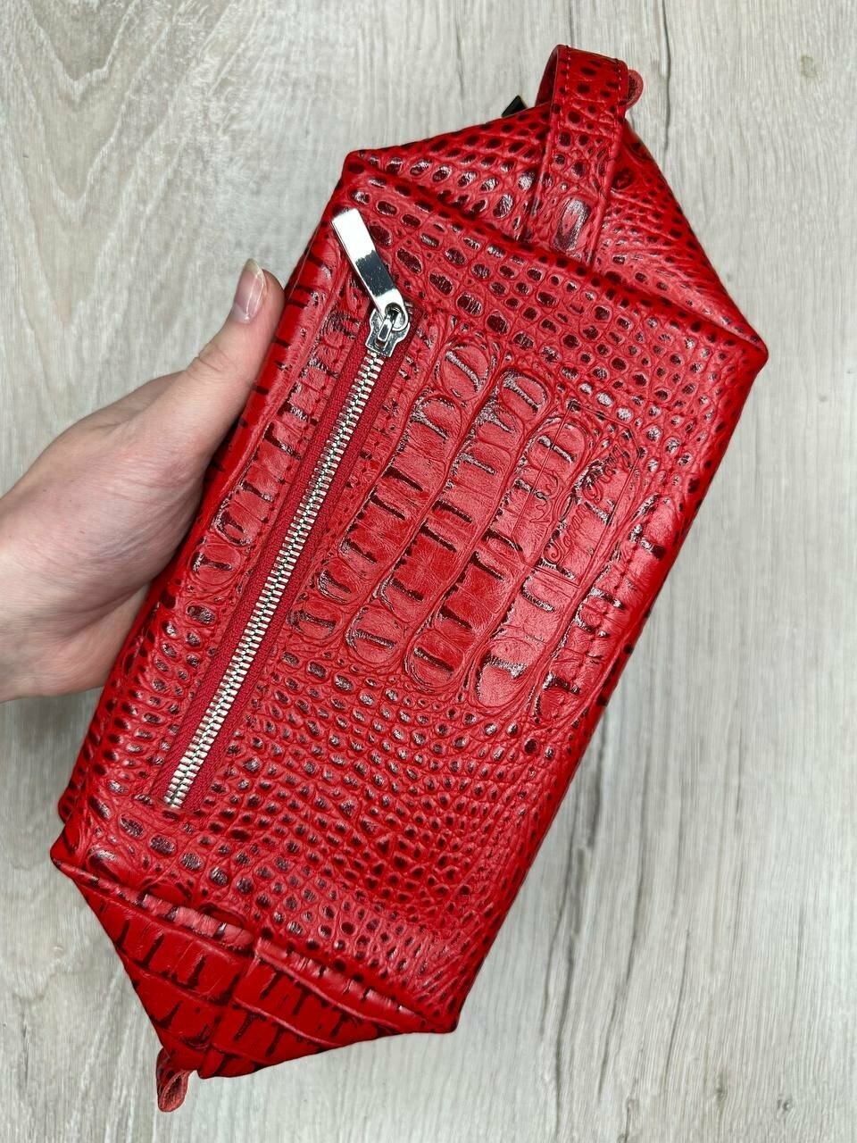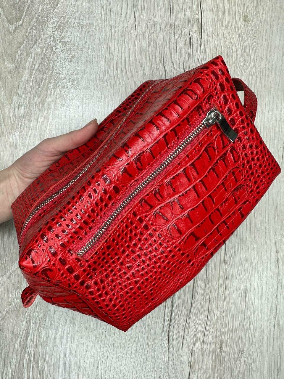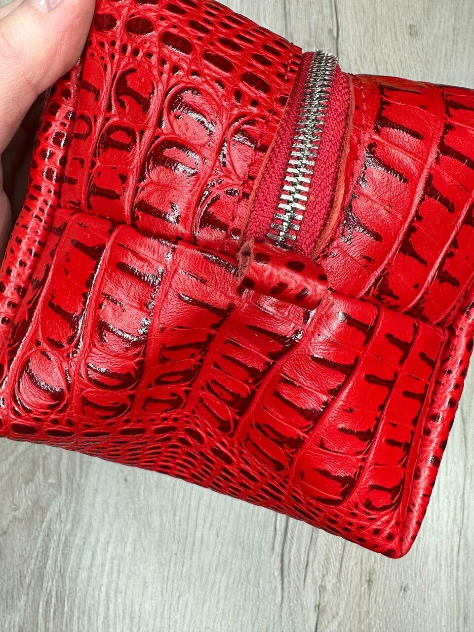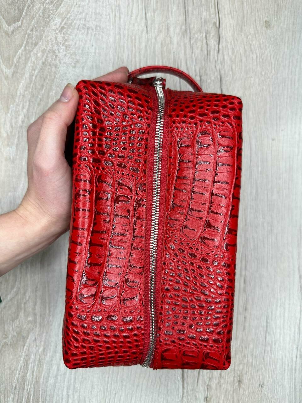 Несессер кожаный крокодил красный/Косметичка дорожная большая из натуральной кожи/Органайзер женский мужской кожа