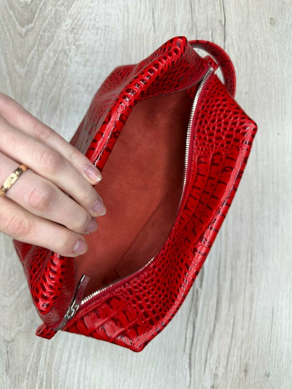 СохранитьНесессер кожаный кайман красный/Косметичка дорожная большая из натуральной кожи/Органайзер женский мужской кожа интересное:
