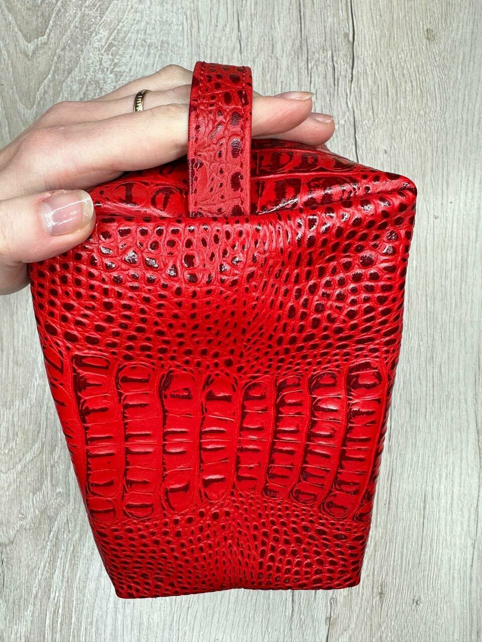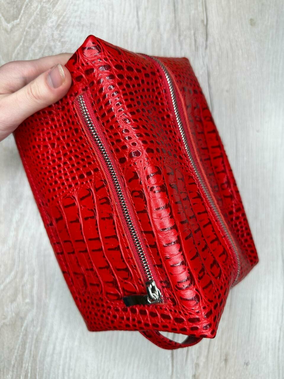 Купить Несессер кожаный кайман красный/Косметичка дорожная большая из натуральной кожи/Органайзер женский мужской кожа