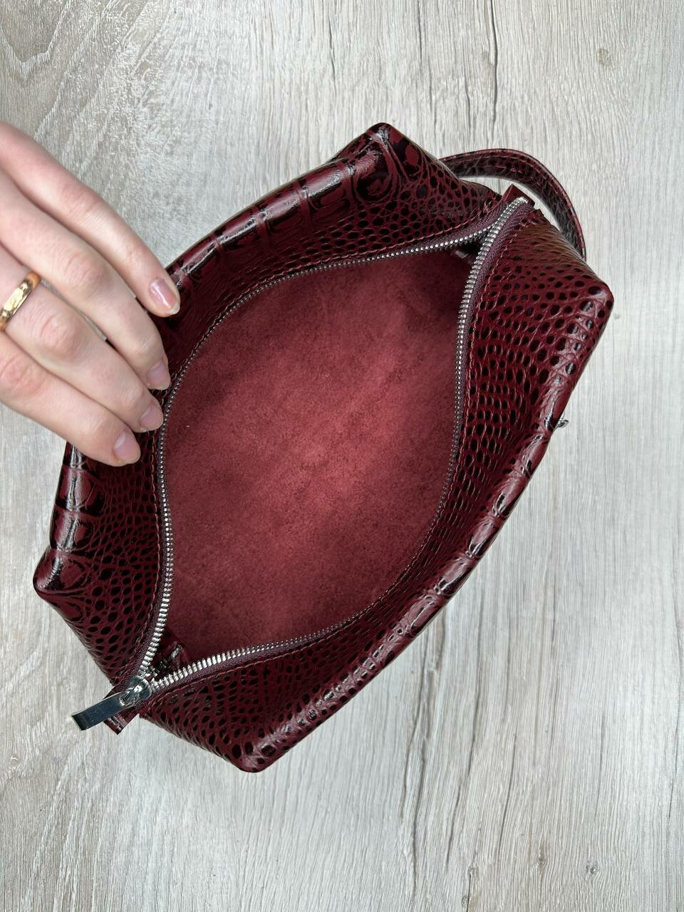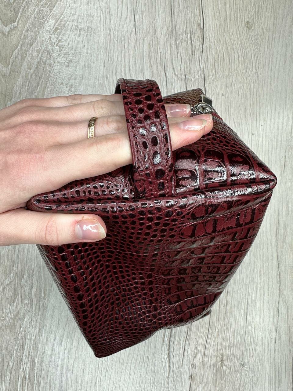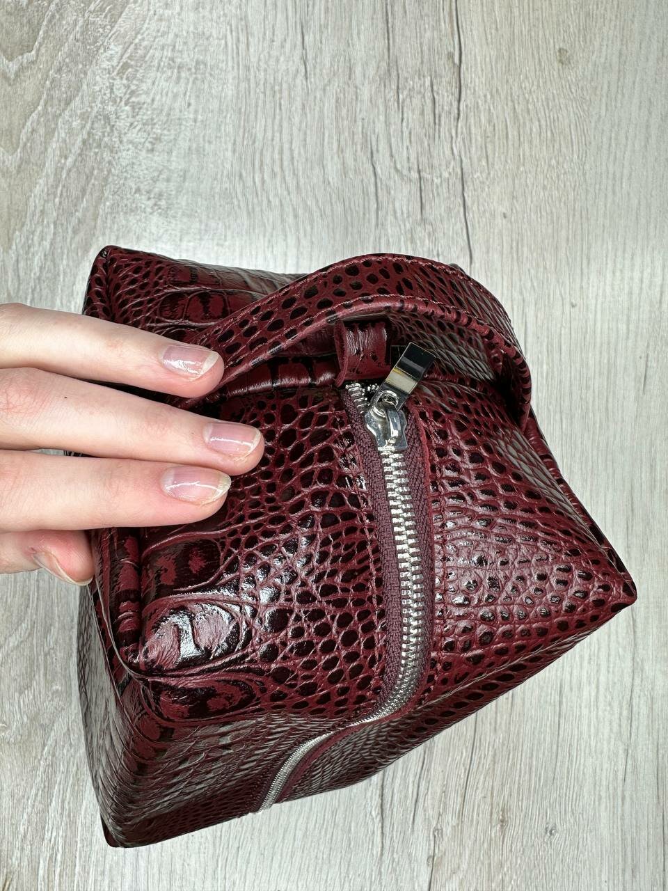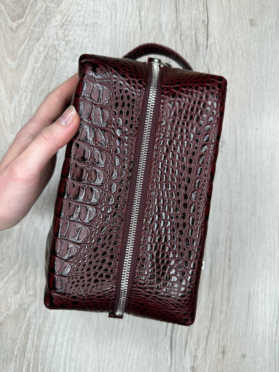 Несессер кожаный ящер бордовый/Косметичка дорожная большая из натуральной кожи/Органайзер женский мужской кожа