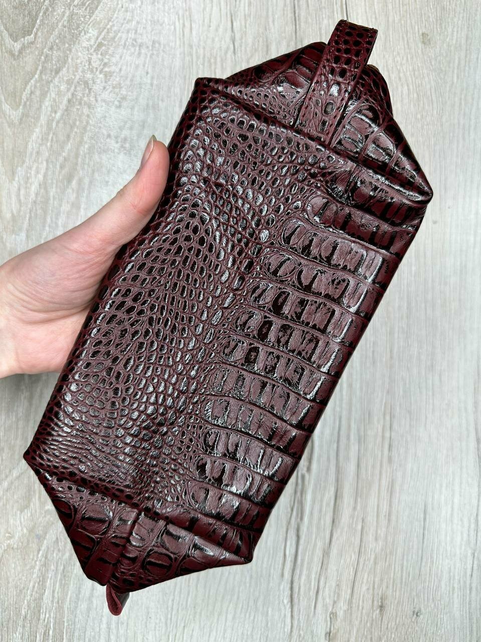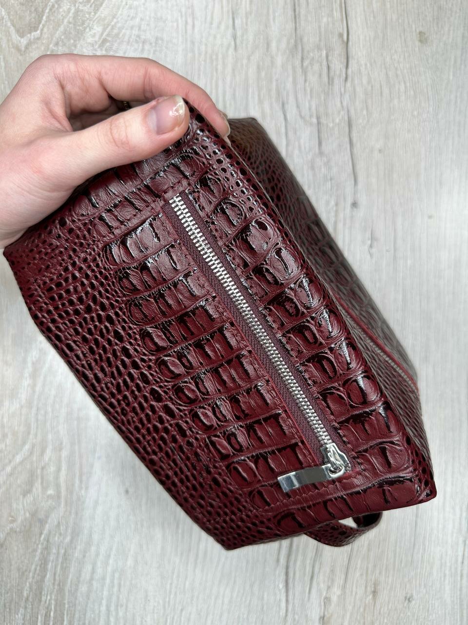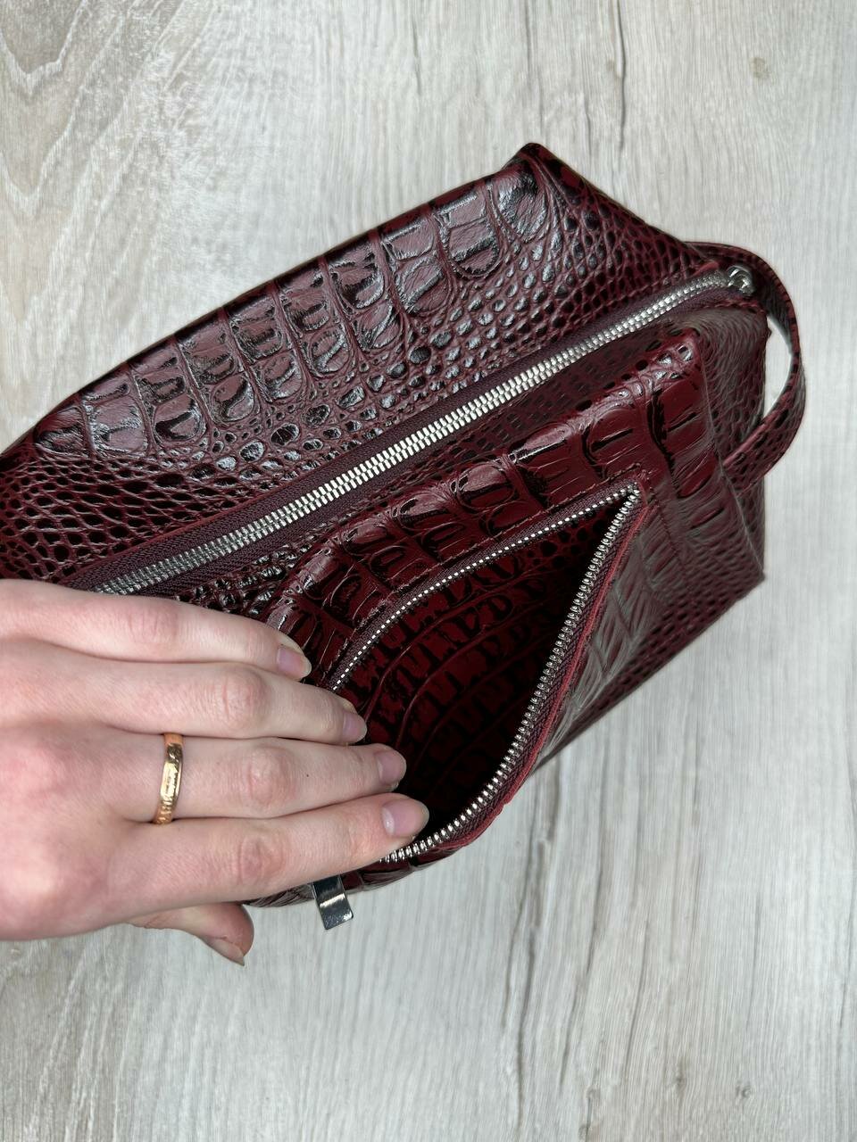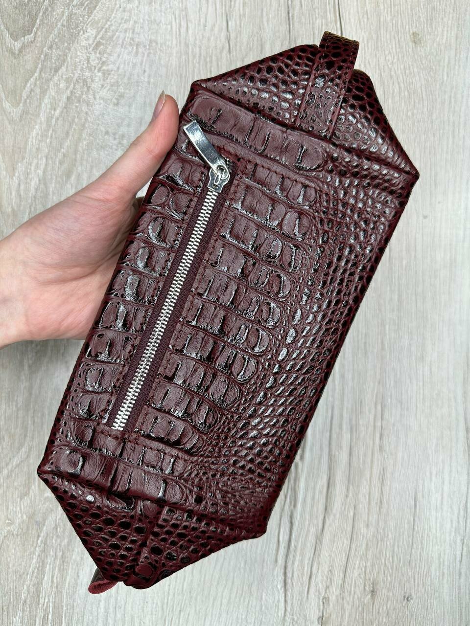 Купить Несессер кожаный кайман бордовый/Косметичка дорожная большая из натуральной кожи/Органайзер женский мужской кожа