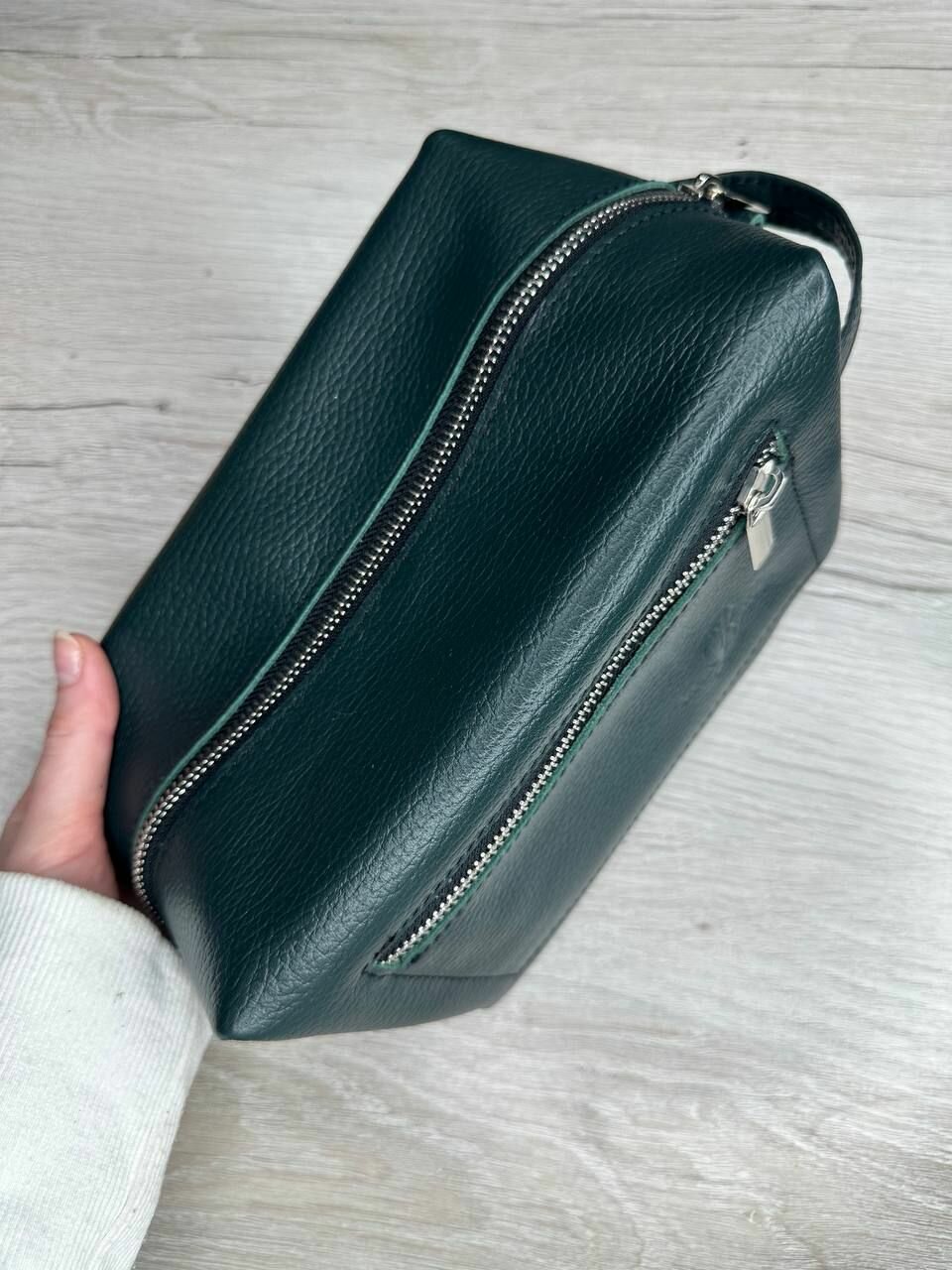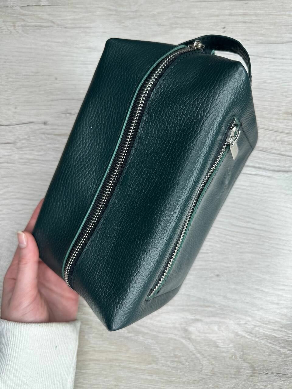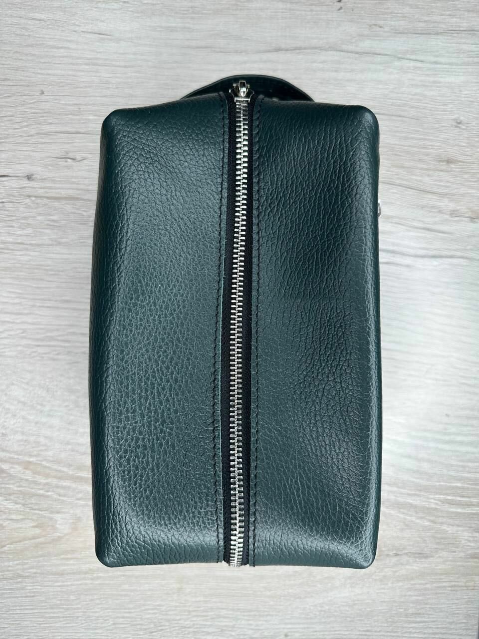 Несессер кожаный пулл-ап зеленый/Косметичка дорожная большая из натуральной кожи/Органайзер женский мужской кожа