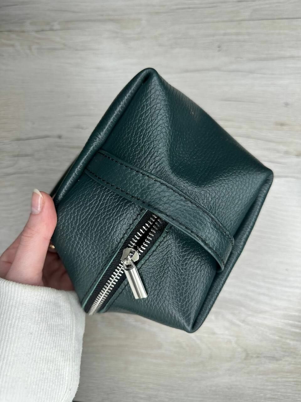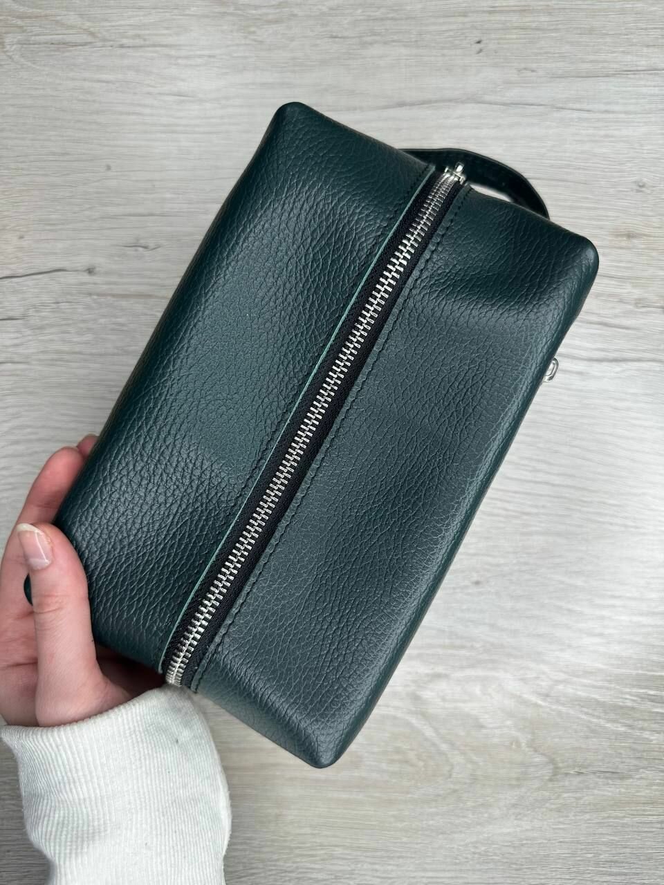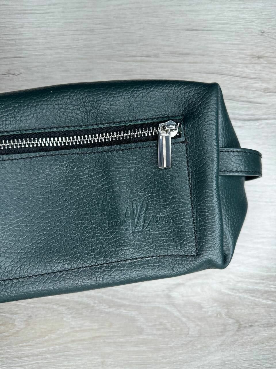 Несессер кожаный пулл-ап зеленый/Косметичка дорожная большая из натуральной кожи/Органайзер женский мужской кожа