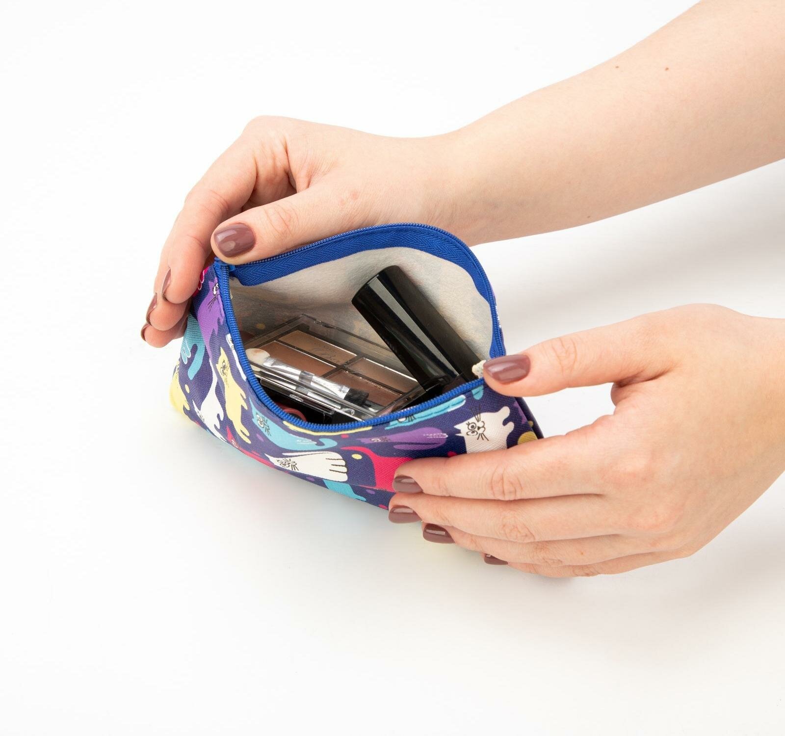 Купить Косметичка на молнии, цвет синий/разноцветный, 1 шт.