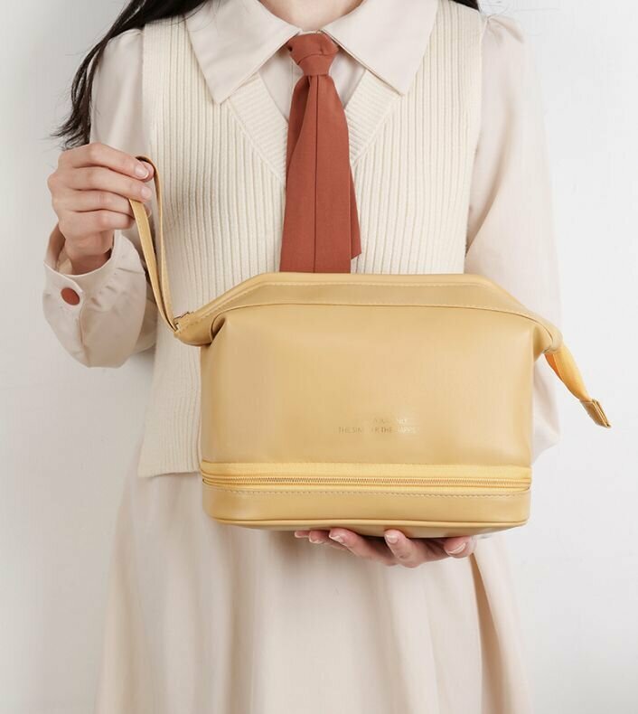 Косметичка BOTTONCINI дорожная, с двойным дном 2 в 1, желтый, р-р 25х20х15 см интересное: