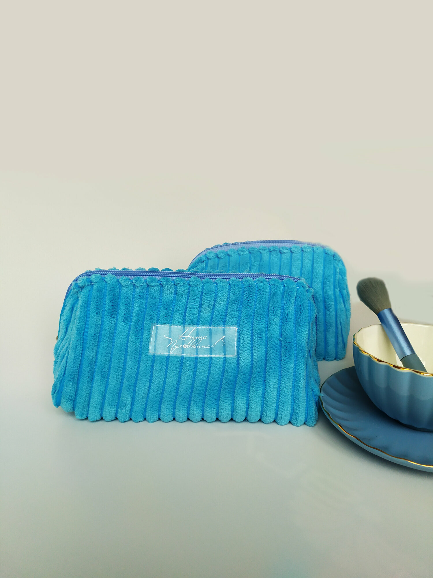 Косметичка вельветовая большая, голубой