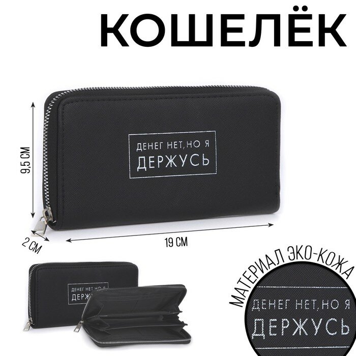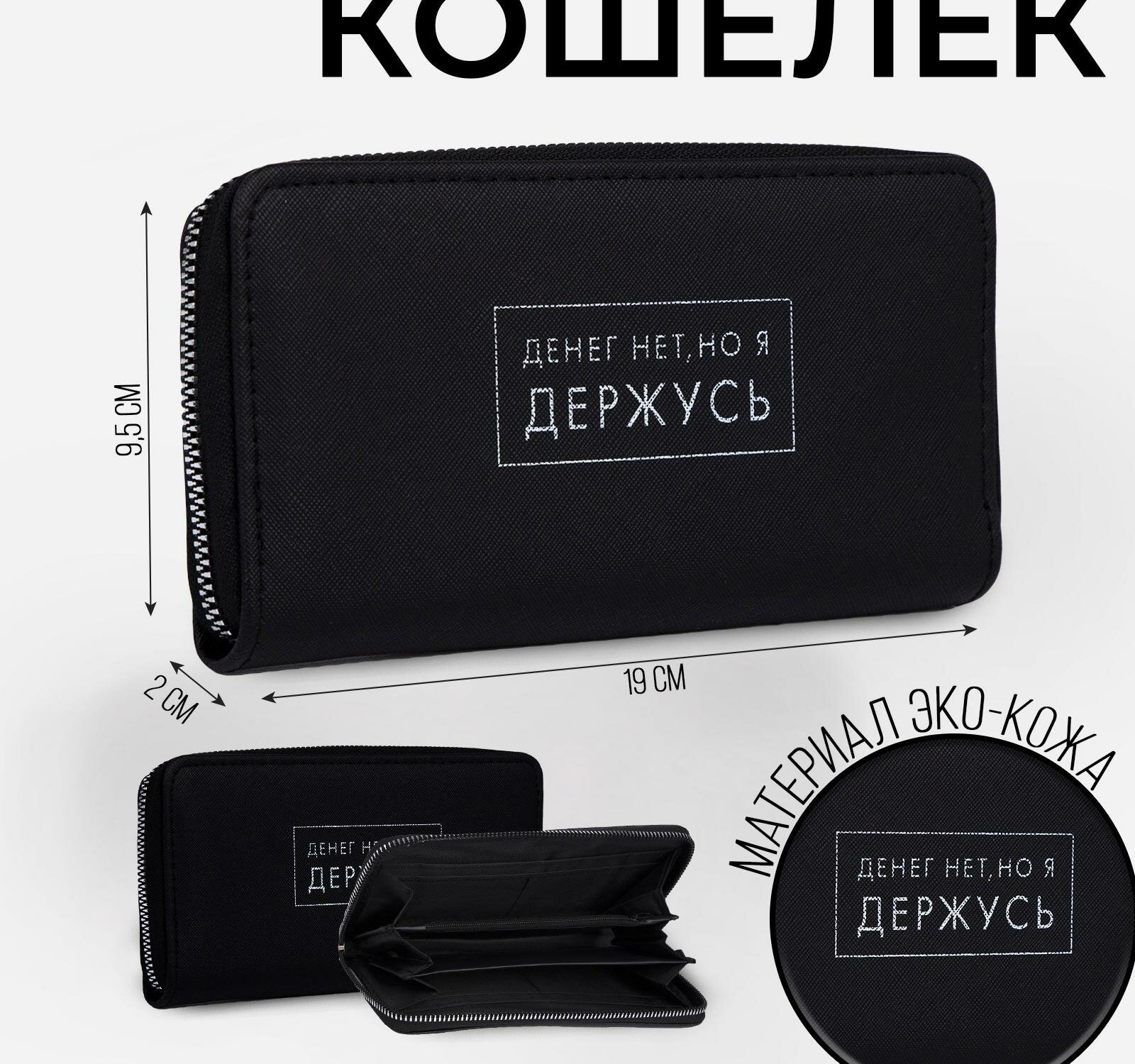 Кошелек кожзам "Денег нет, но я держусь" 19*9,5см 4126501