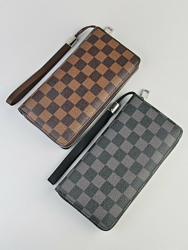Клатч универсальный шахматная клетка, зернистая фактура, экокожа, отделения для карт и монет, 2 отделения для банкнот, коричневый интересное: