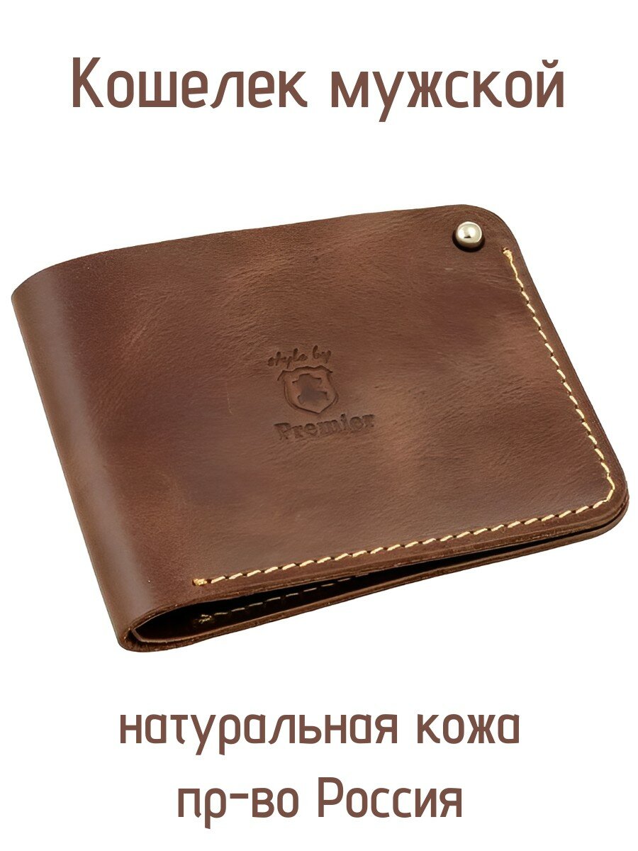 Купить Кошелек мужской кожаный маленький тонкий Премьер для денег и карт, Россия, кожа, темно - коричневый