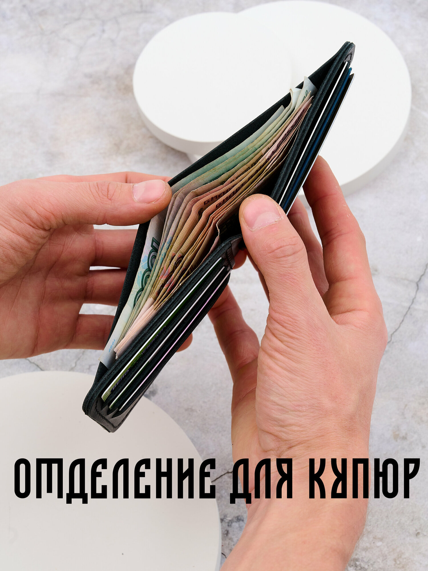 Мужской кошелек 1762 из натуральной кожи, бумажник, портмоне, черный интересное: