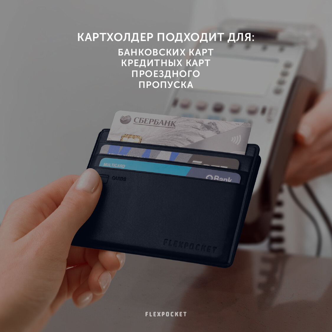 СохранитьКартхолдер Flexpocket, защитный футляр на 6 карт, держатель для кредитных карт, визитница, гладкая экокожа, цвет Темно-синий интересное: