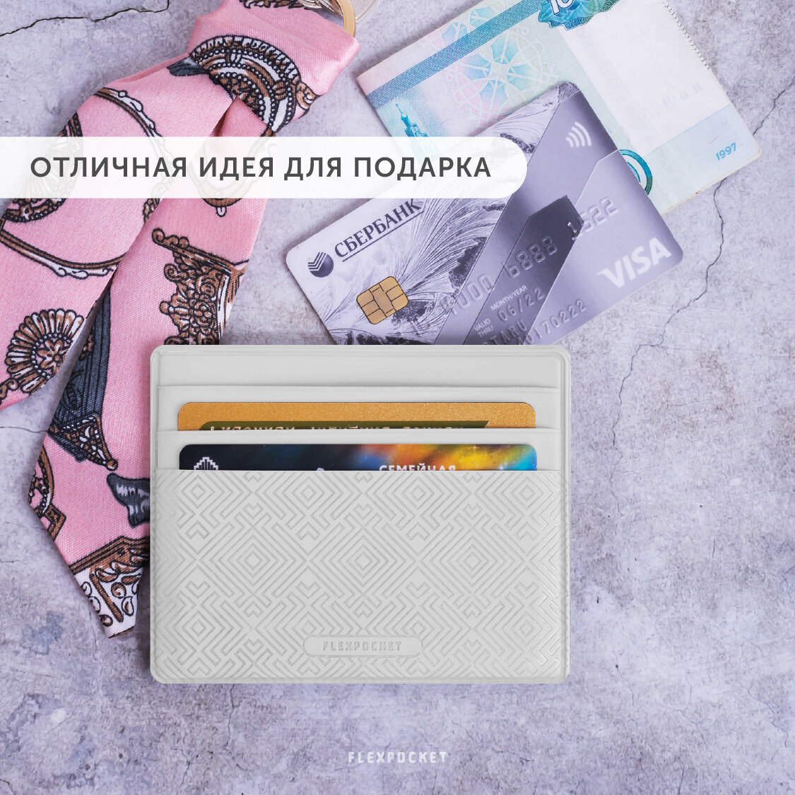 Картхолдер Flexpocket, защитный футляр на 6 карт, держатель для кредитных карт, визитница, гладкая экокожа, цвет Белый
