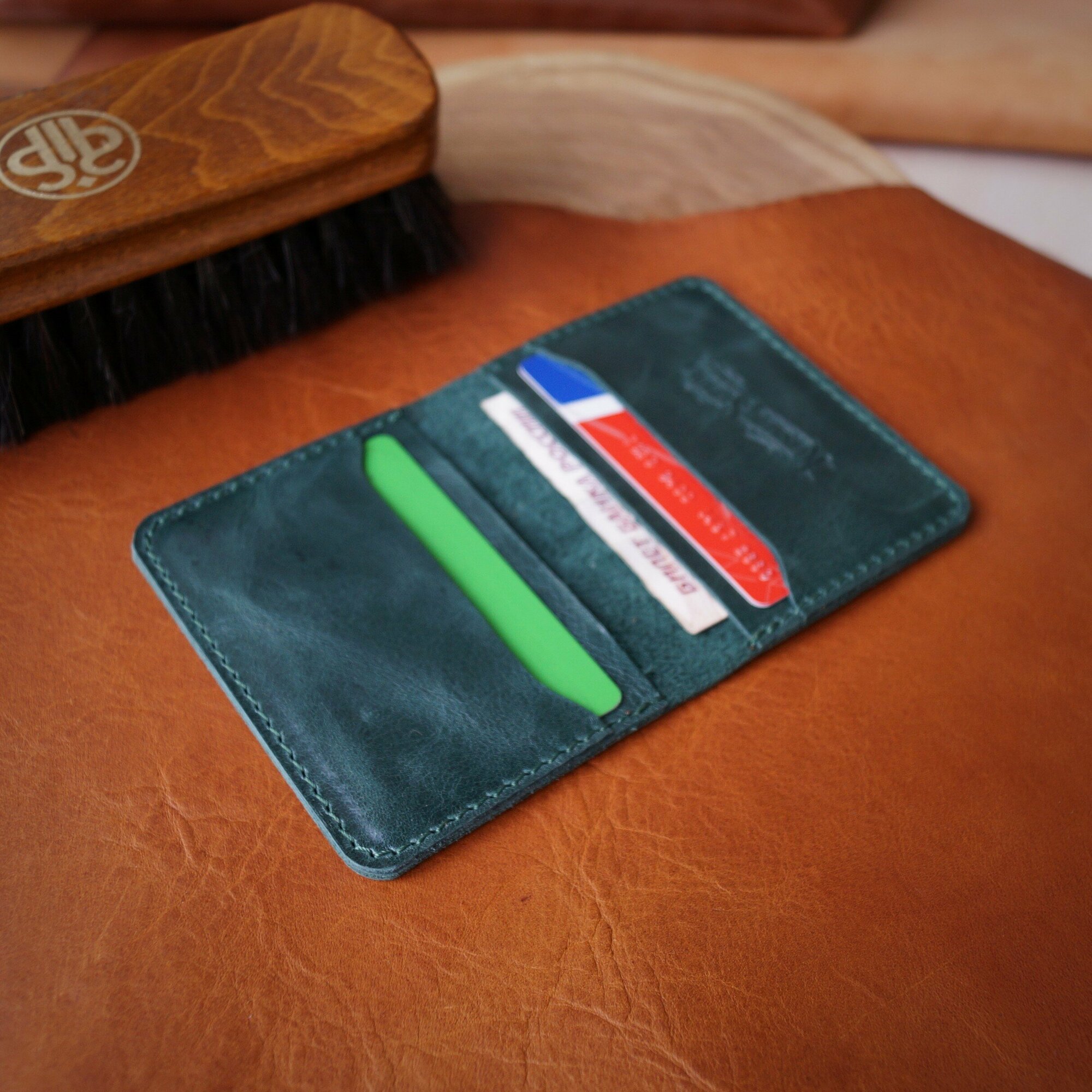 Купить Картхолдер/визитница кожаный, ручная работа, мужской/женский, цвет: зелёный