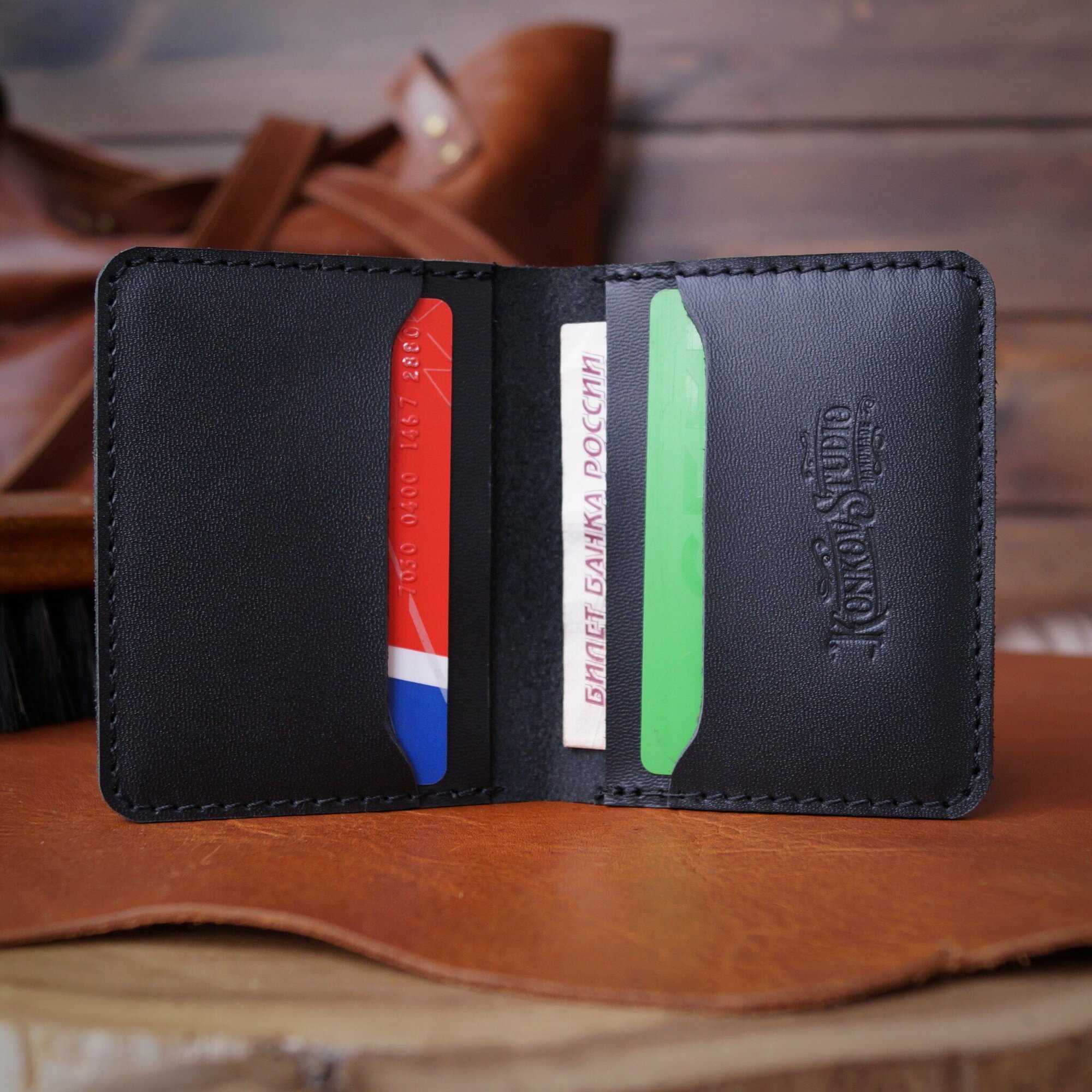 СохранитьКартхолдер/визитница кожаный, ручная работа, мужской/женский, цвет: чёрный интересное: