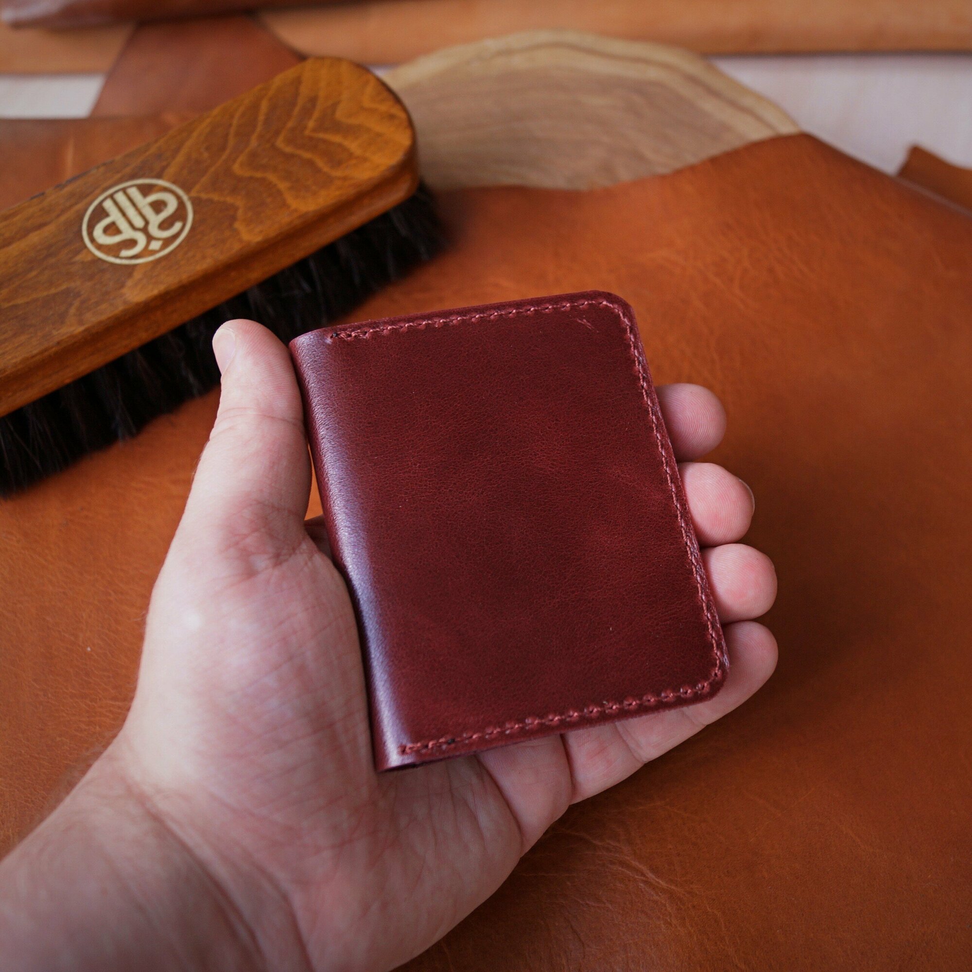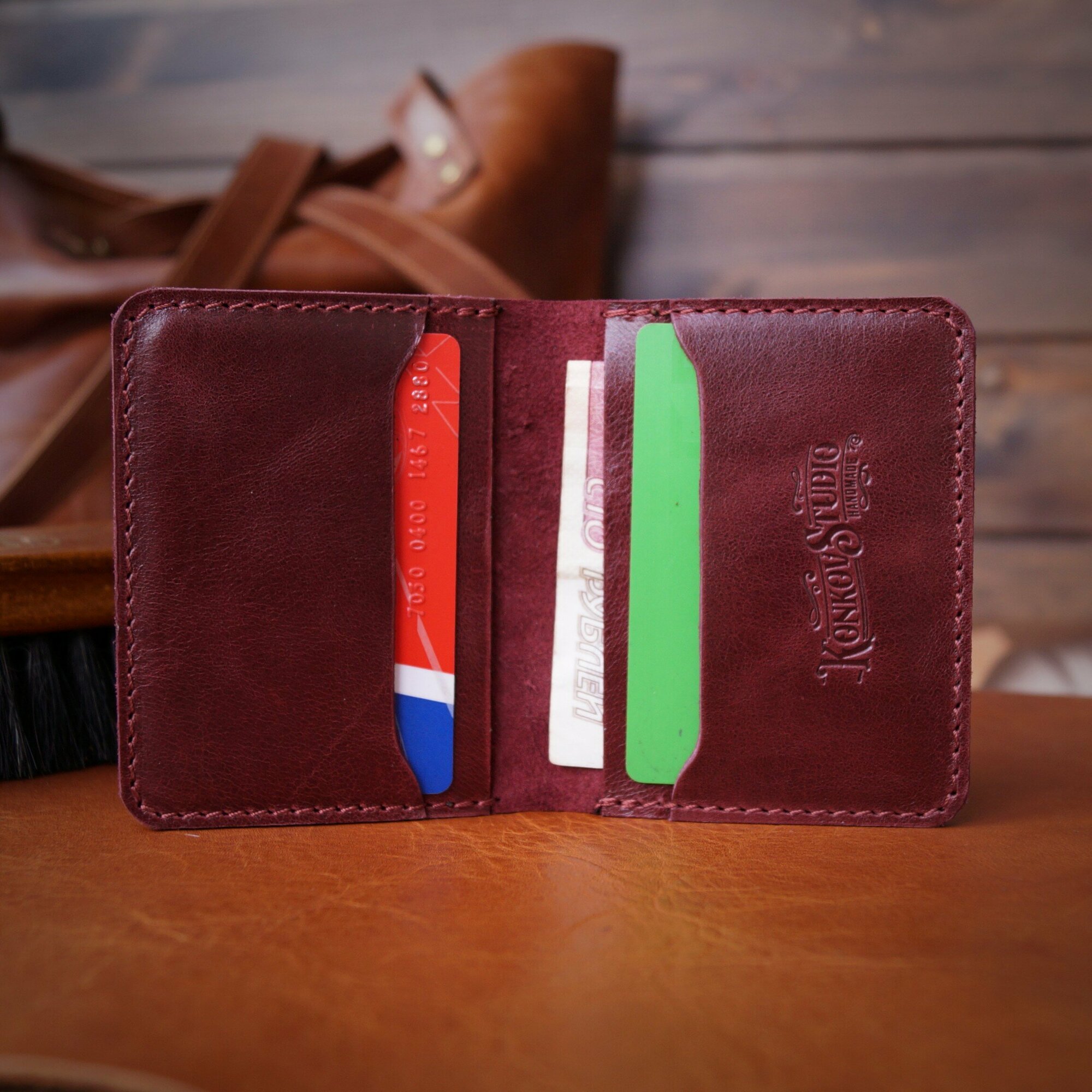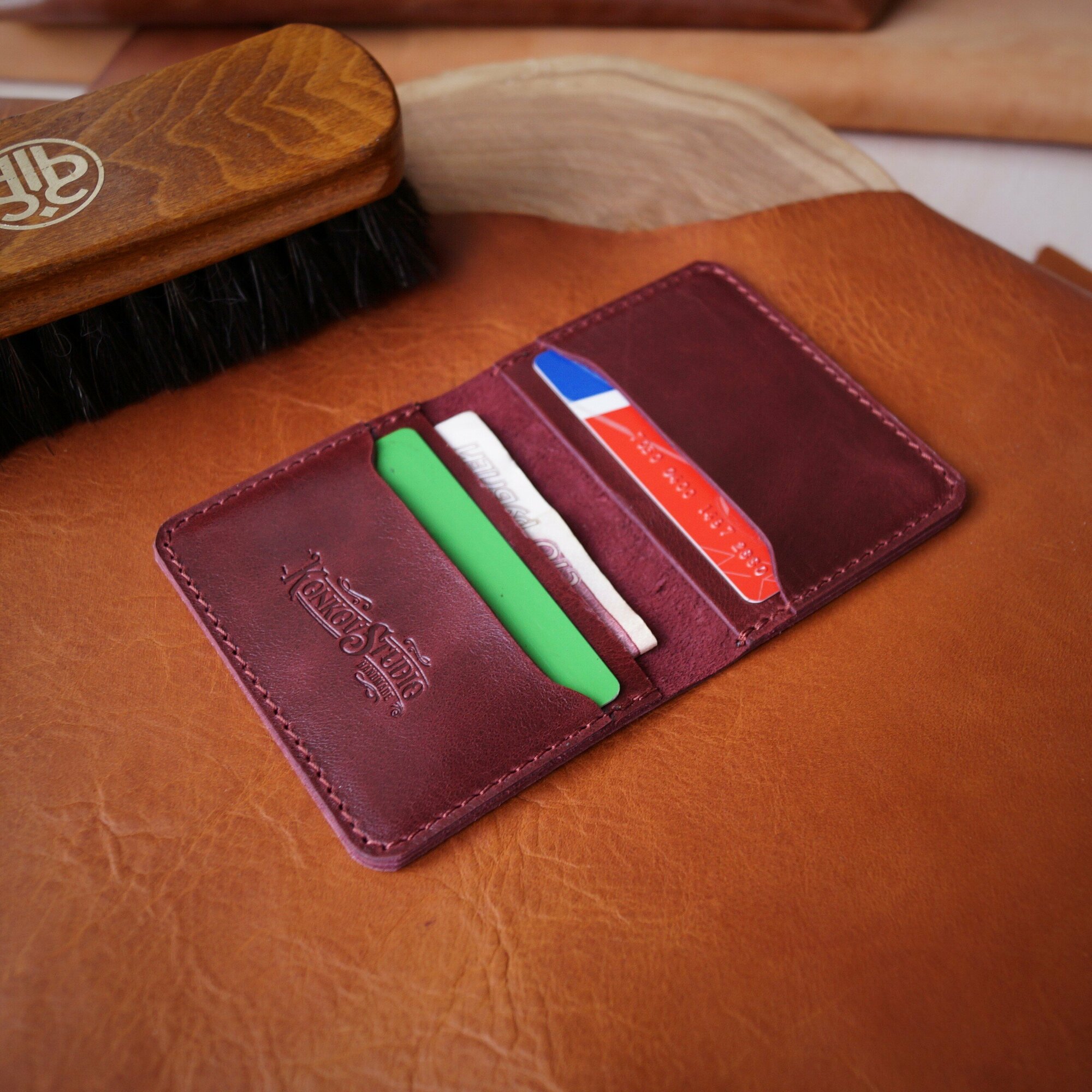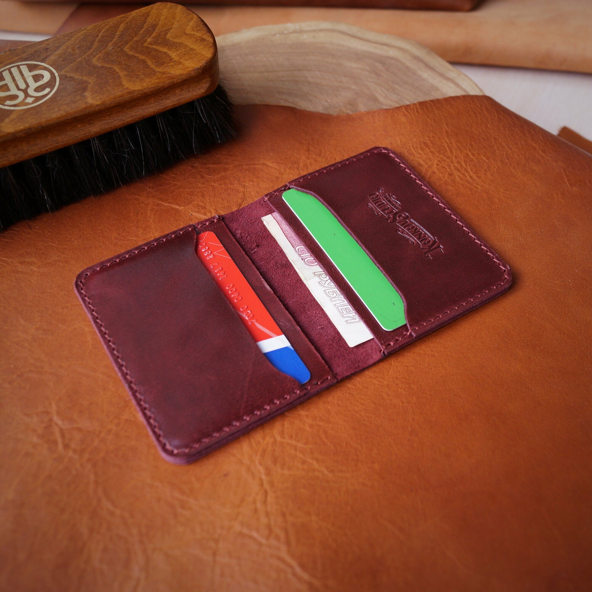 Купить Картхолдер/визитница кожаный, ручная работа, мужской/женский, цвет: Бордовый