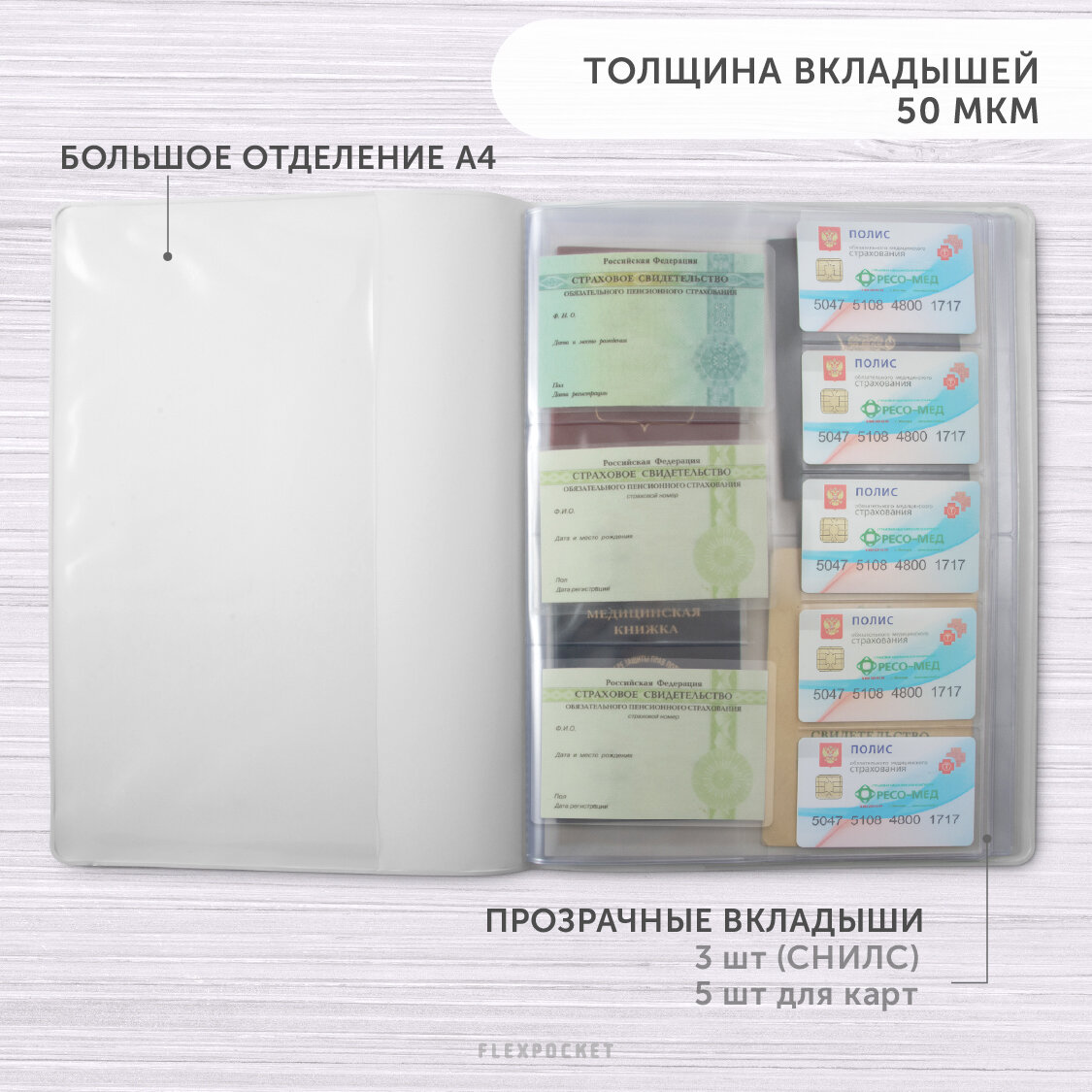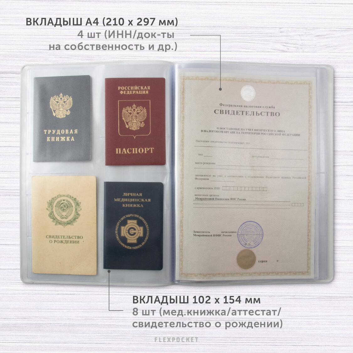 Папка с файлами для семейных документов Flexpocket, органайзер для хранения документов формата А4, цвет сине-морской