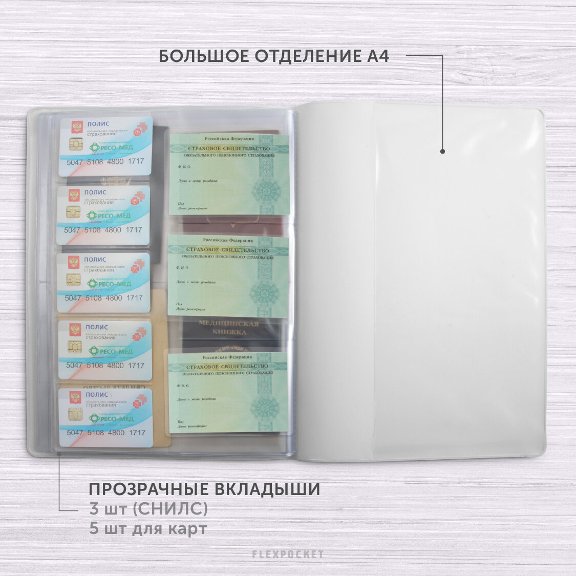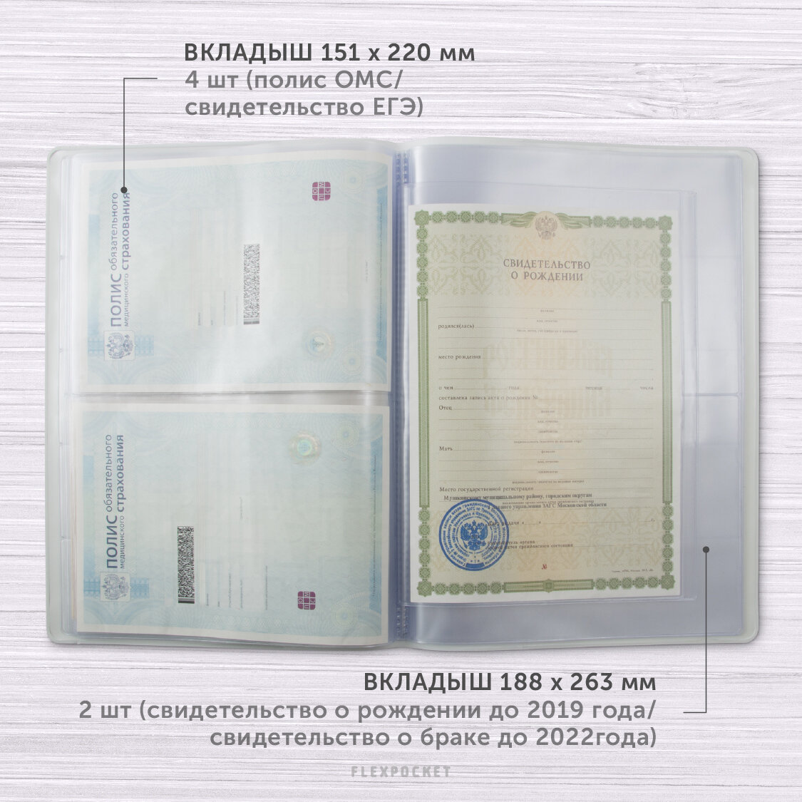 Папка с файлами для семейных документов Flexpocket, органайзер для хранения документов формата А4, цвет белый-626