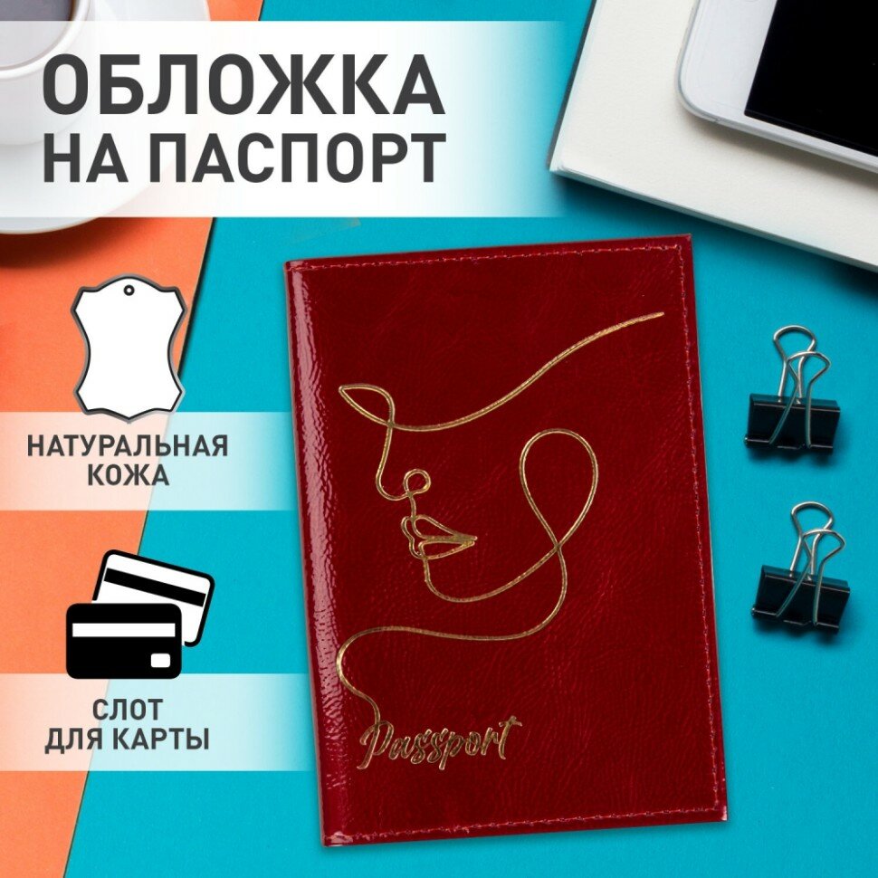 Обложка для паспорта Brauberg натуральная кожа, наплак, тиснение золотом, impression, красная интересное: