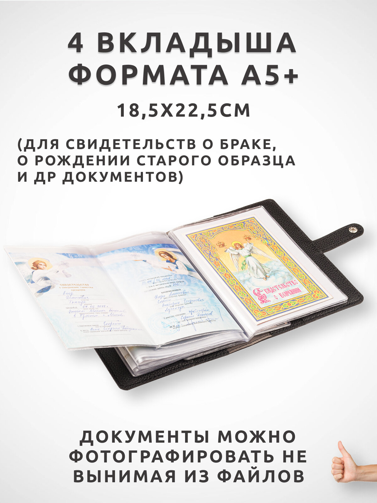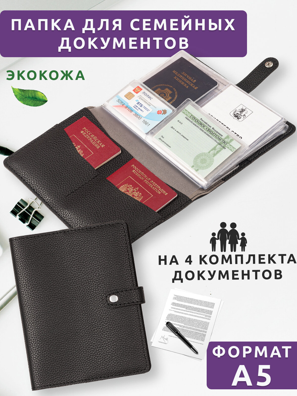 Папка для хранения семейных документов А5 на кнопке кожаная интересное:
