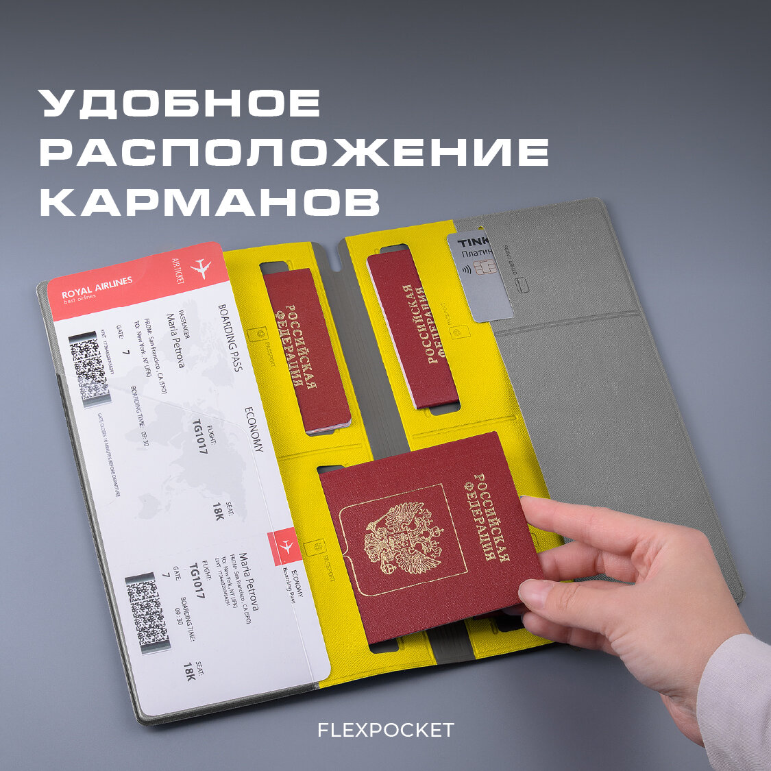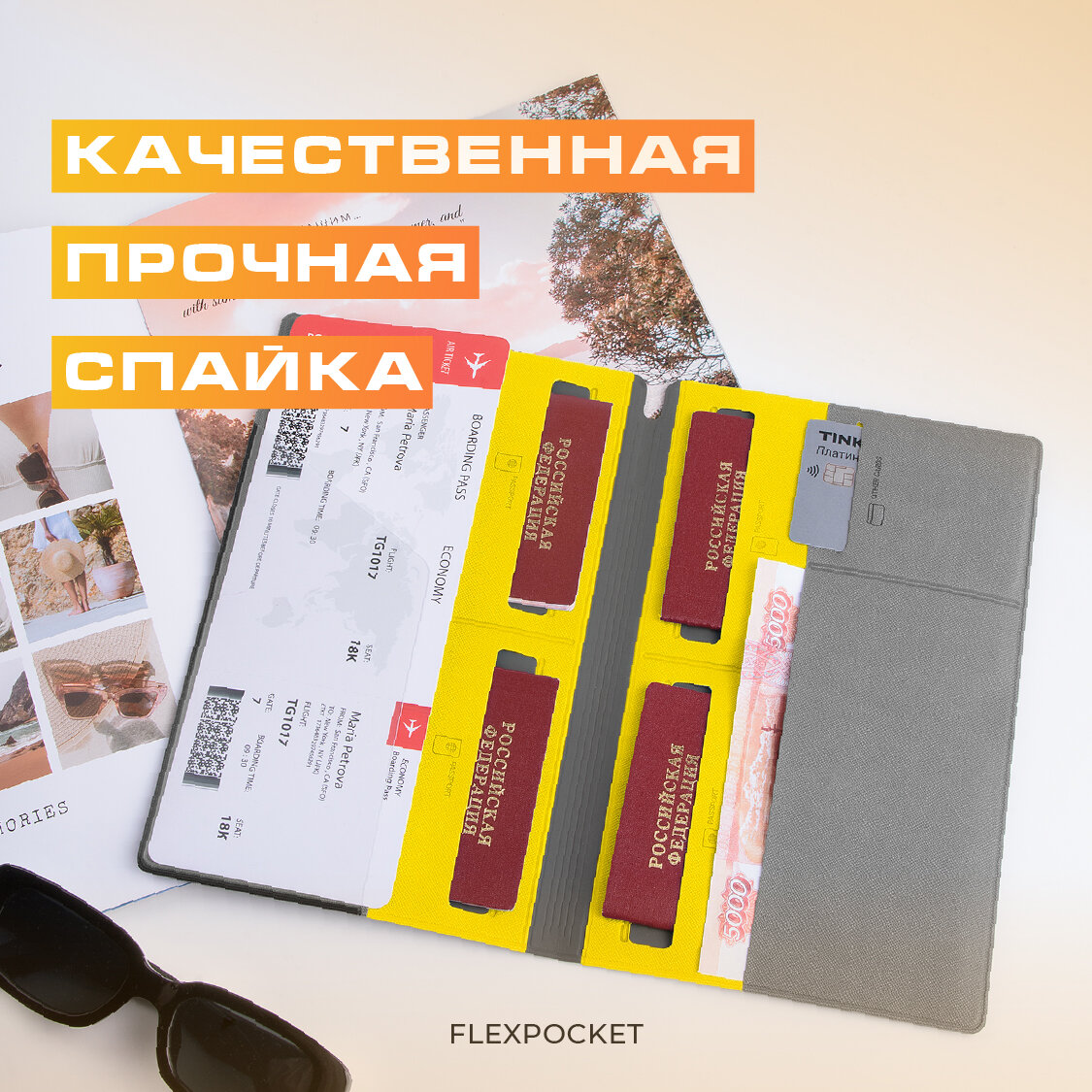 СохранитьОрганайзер для путешествий семейный Flexpocket / Турконверт / Авиахолдер / Папка для документов, загранпаспорта, желтый интересное: