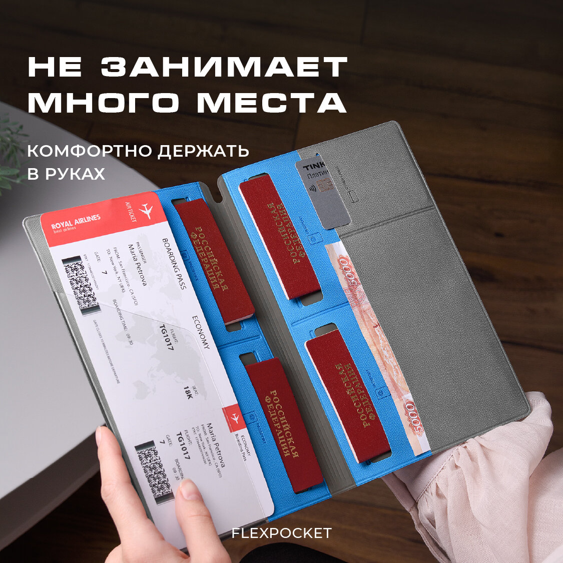 СохранитьОрганайзер для путешествий семейный Flexpocket / Турконверт / Авиахолдер / Папка для документов, загранпаспорта, цвет Светло-серый интересное: