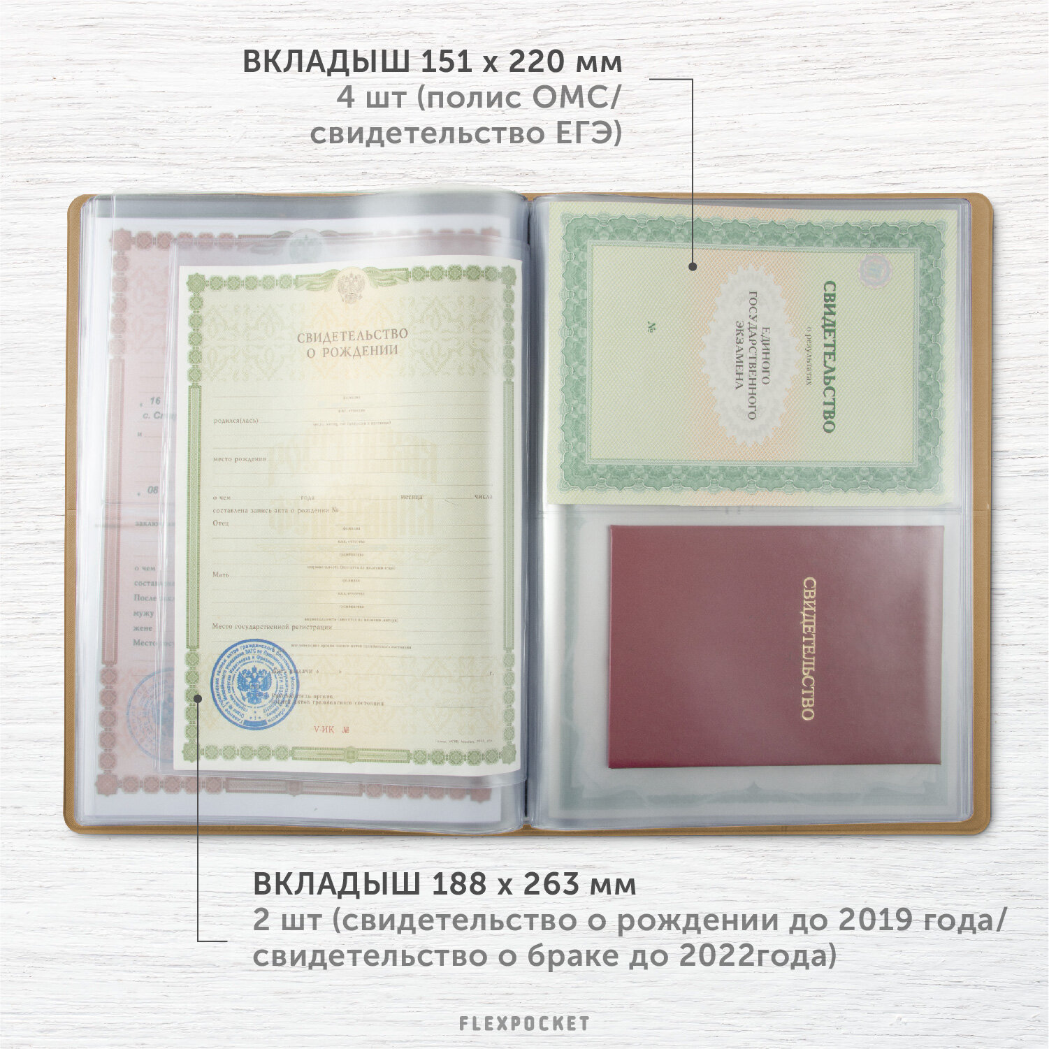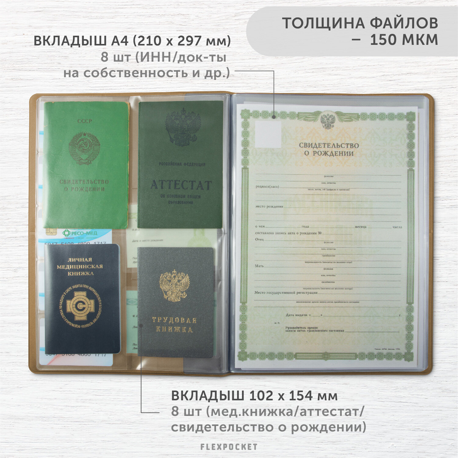 Папка для семейных документов из экокожи Flexpocket, Органайзер для документов, формат А4, цвет Бежевый