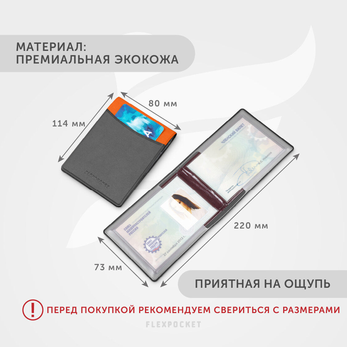 Обложка для удостоверения / студенческого билета с карманом для карты, Flexpocket, цвет Черный