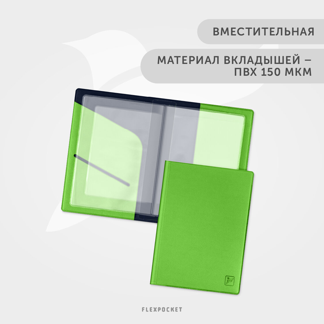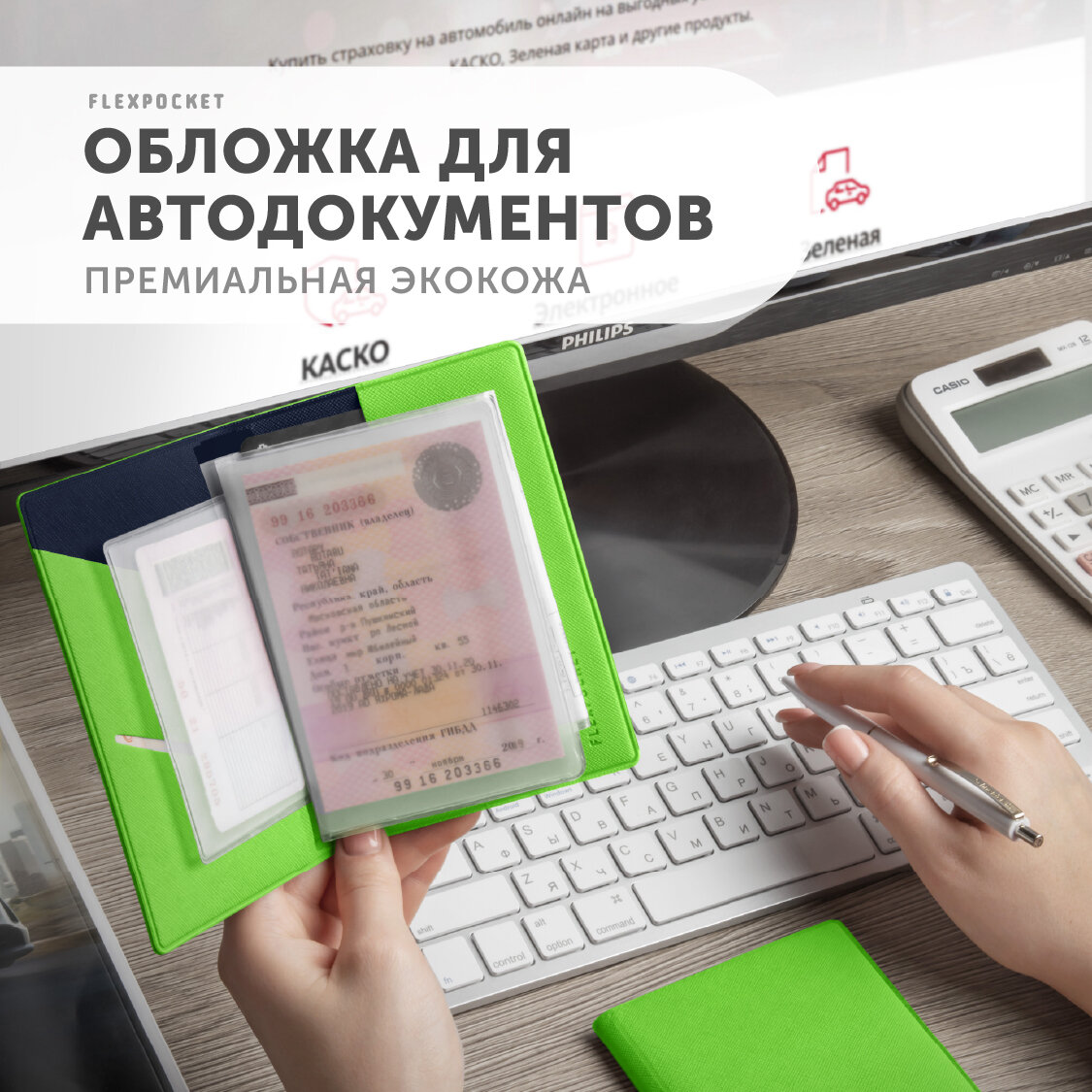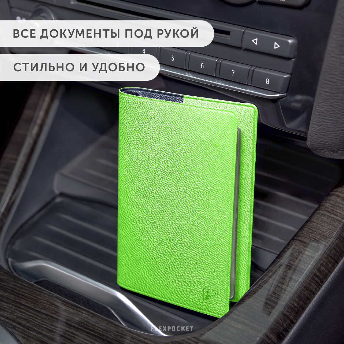 Обложка для автодокументов, водительских прав, удостоверения, СТС, осаго Flexpocket, автодокументница, цвет Зеленый