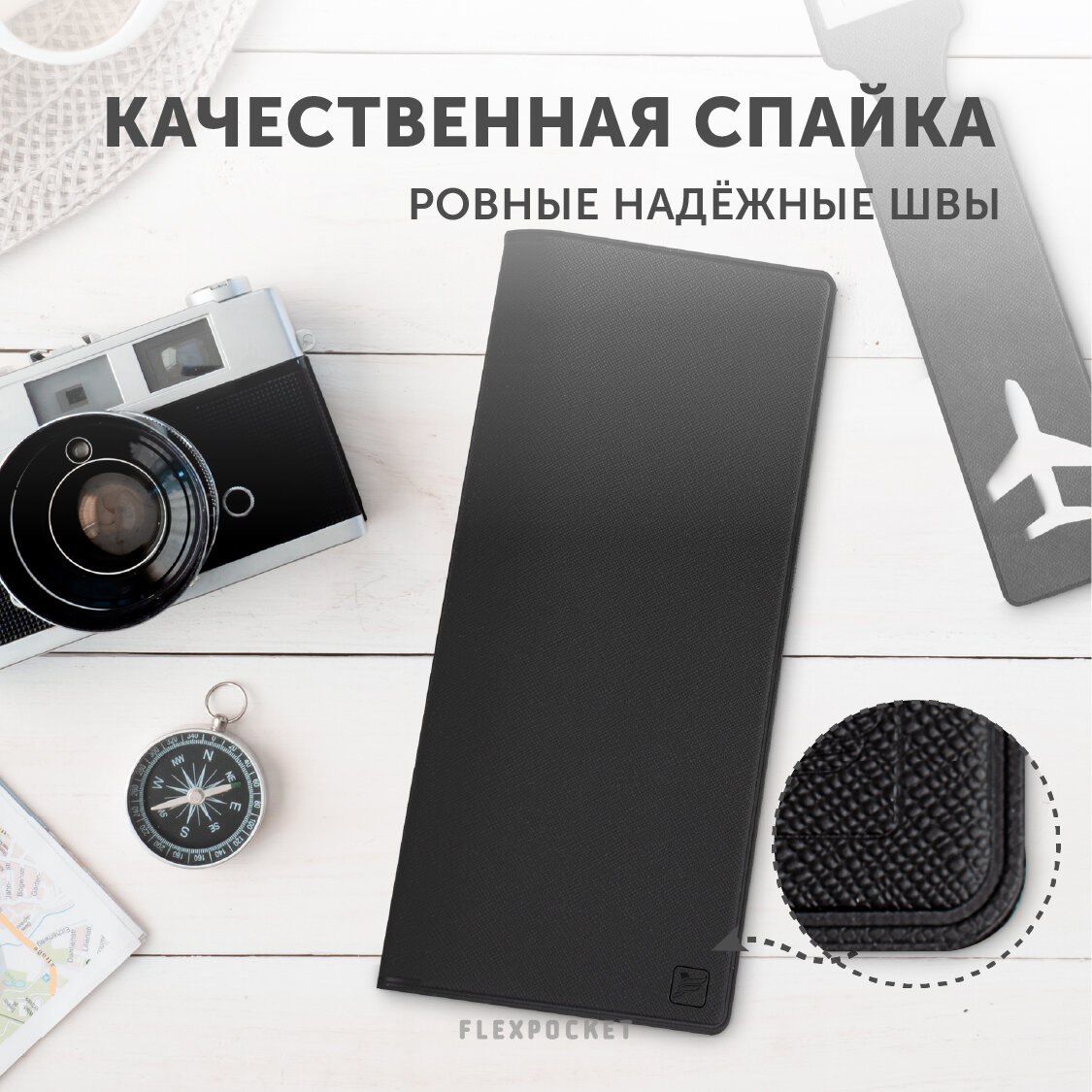 Набор для путешествий Flexpocket: органайзер для документов + багажная бирка 1шт, цвет черный интересное: