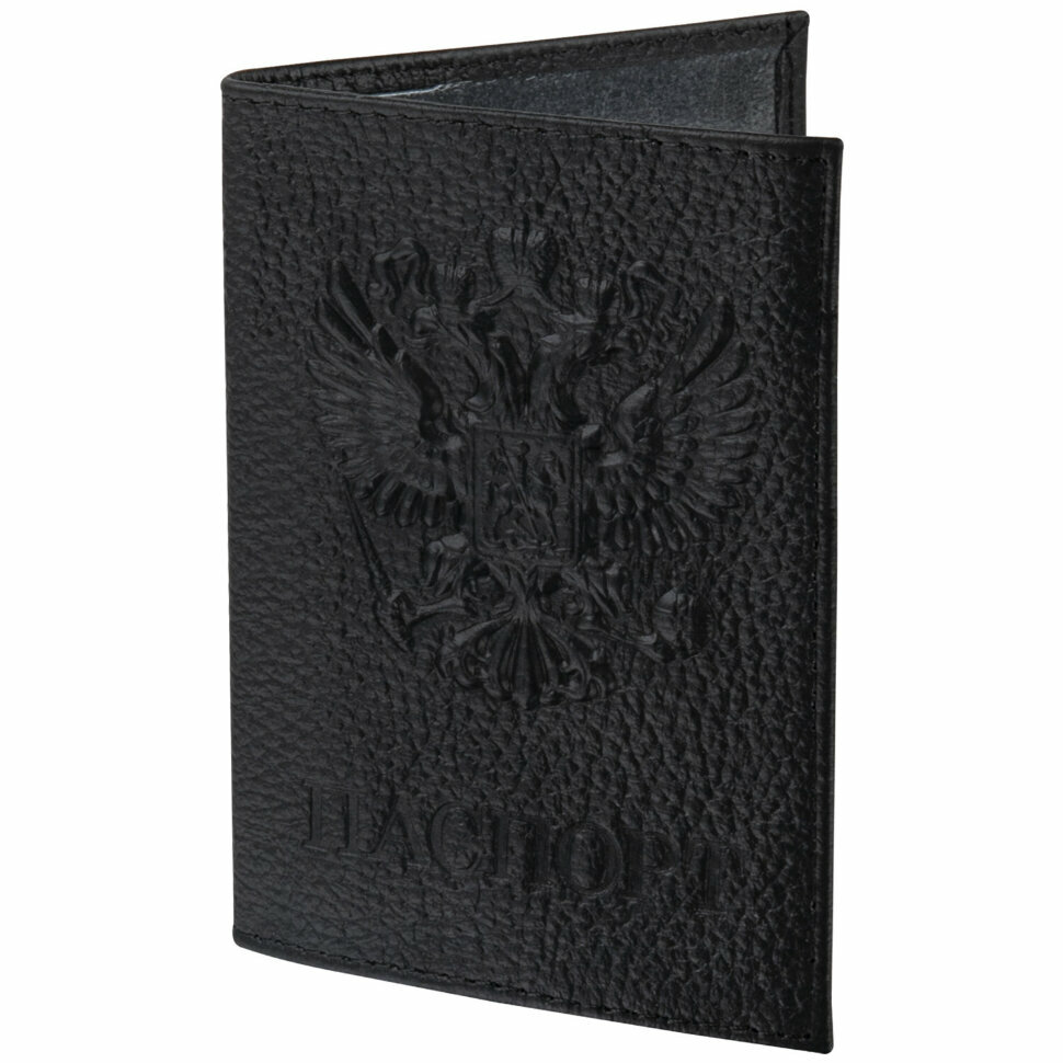 Обложка для паспорта натуральная кожа флоттер, "Герб", черная, BRAUBERG, 237198 интересное: