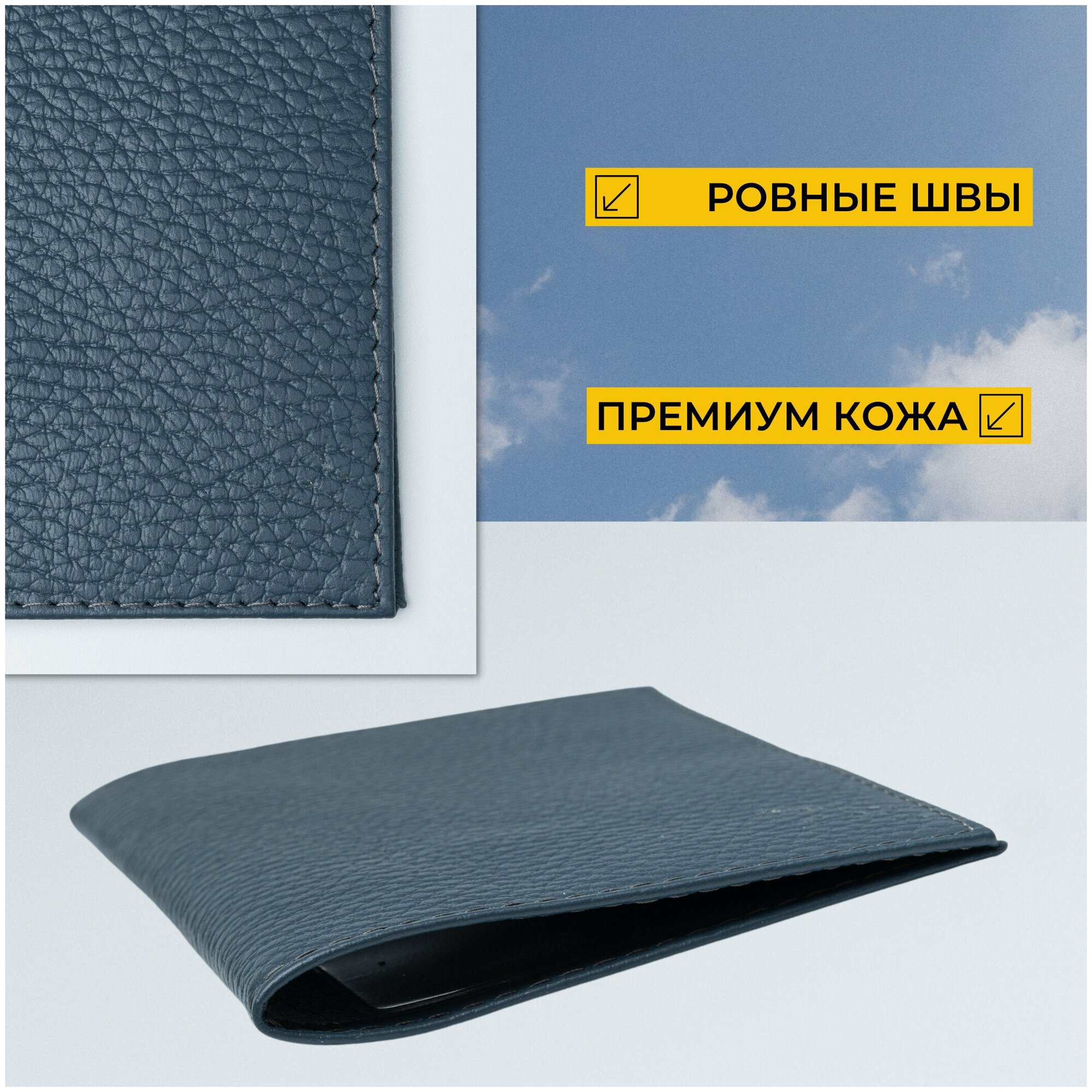 Обложка на паспорт из натуральной кожи ( без надписей / кожаная / мужская / женская ) серо-голубой