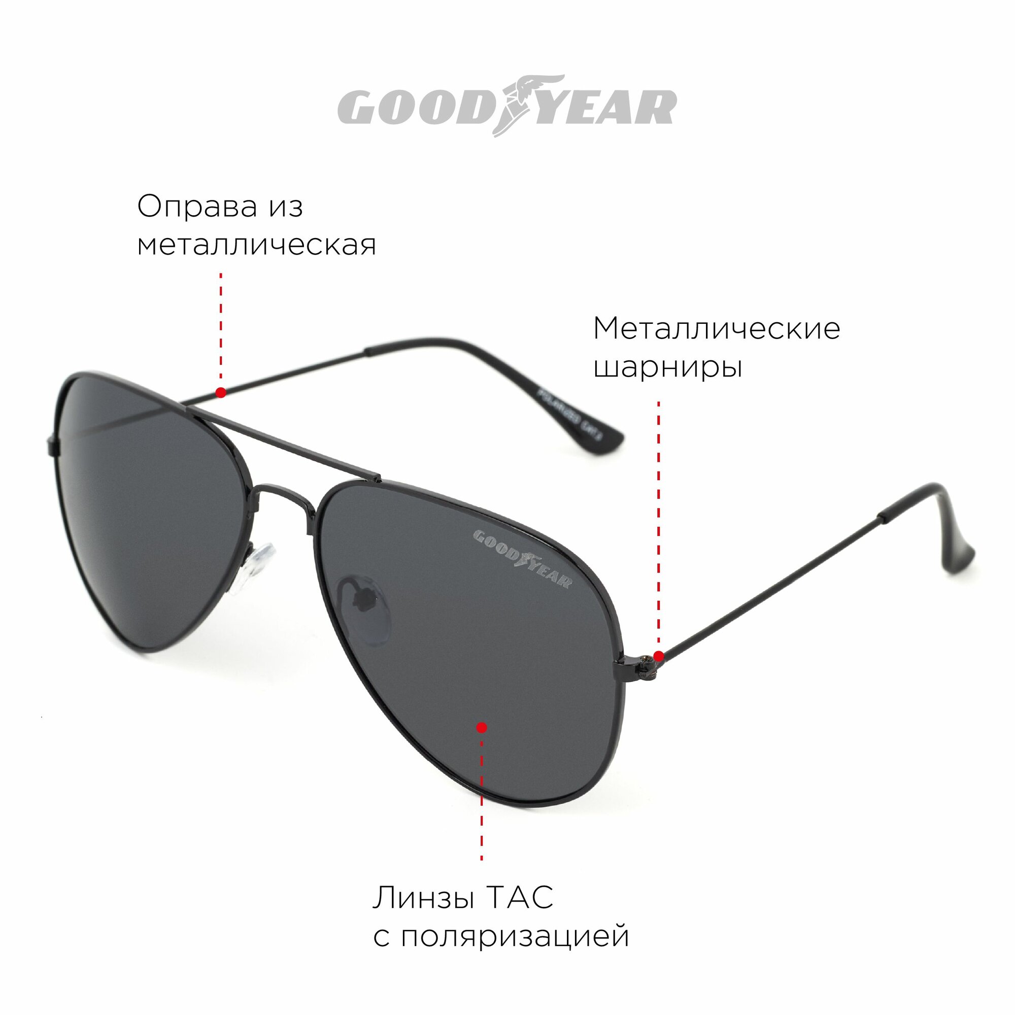 Ниже Вы можете прочитать отзывы на Очки солнцезащитные Goodyear поляризационные авиаторы, черный, ознакомится с подробными характеристиками, посмотреть интересные обзоры и фотографии на Очки солнцезащитные Goodyear поляризационные авиаторы, черный.