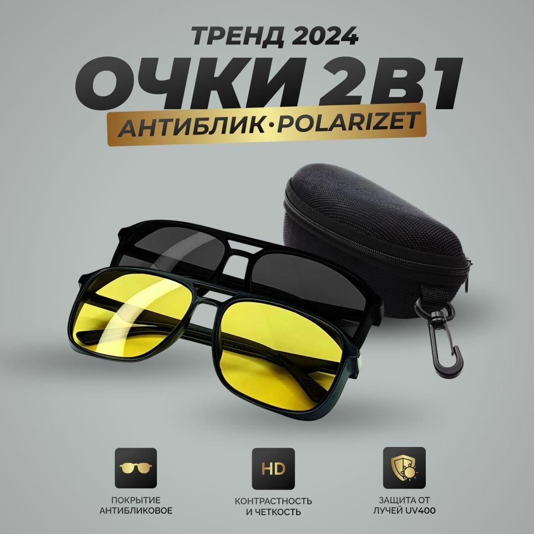 Купить Очки для водителя антиблик, поляризационные 2 в 1.