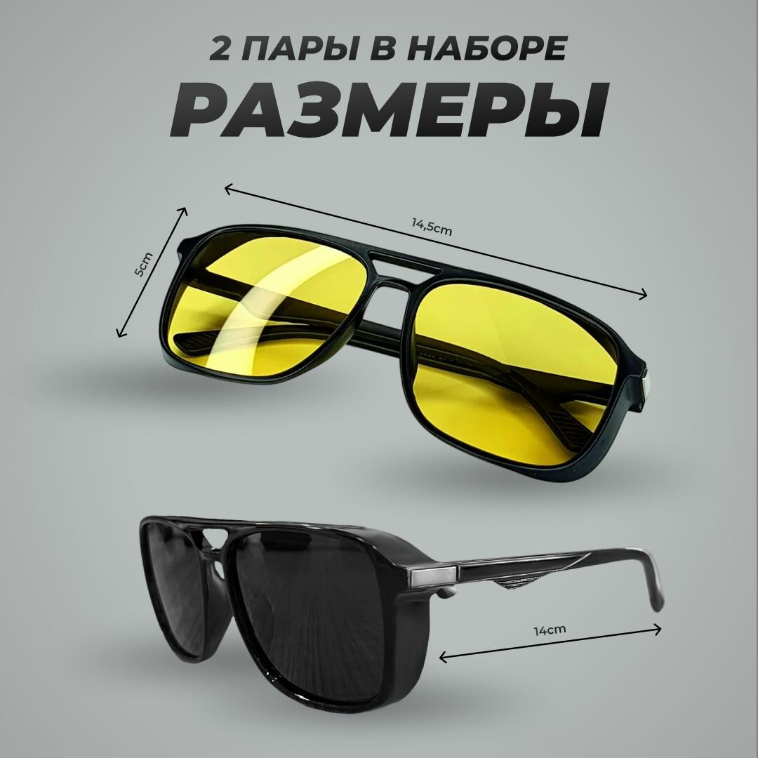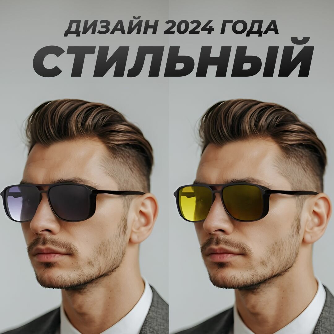 Очки солнцезащитные мужские, антиблик, для водителя, рыбака, охотника. Набор 2 в 1