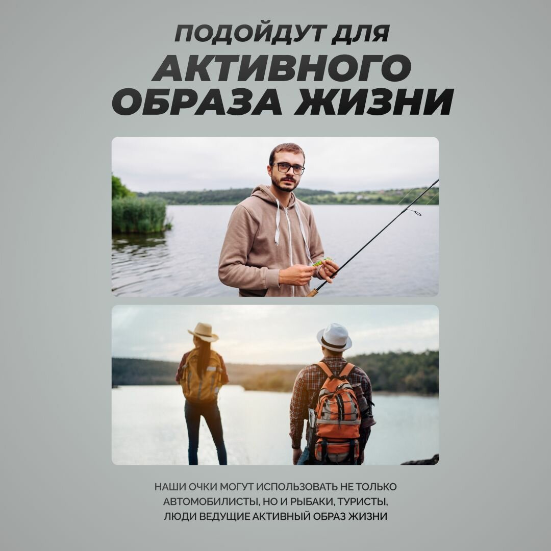 Очки для водителя, рыбака, охотника. Антибликовые, солнцезащитные, поляризационные со сменными линзами