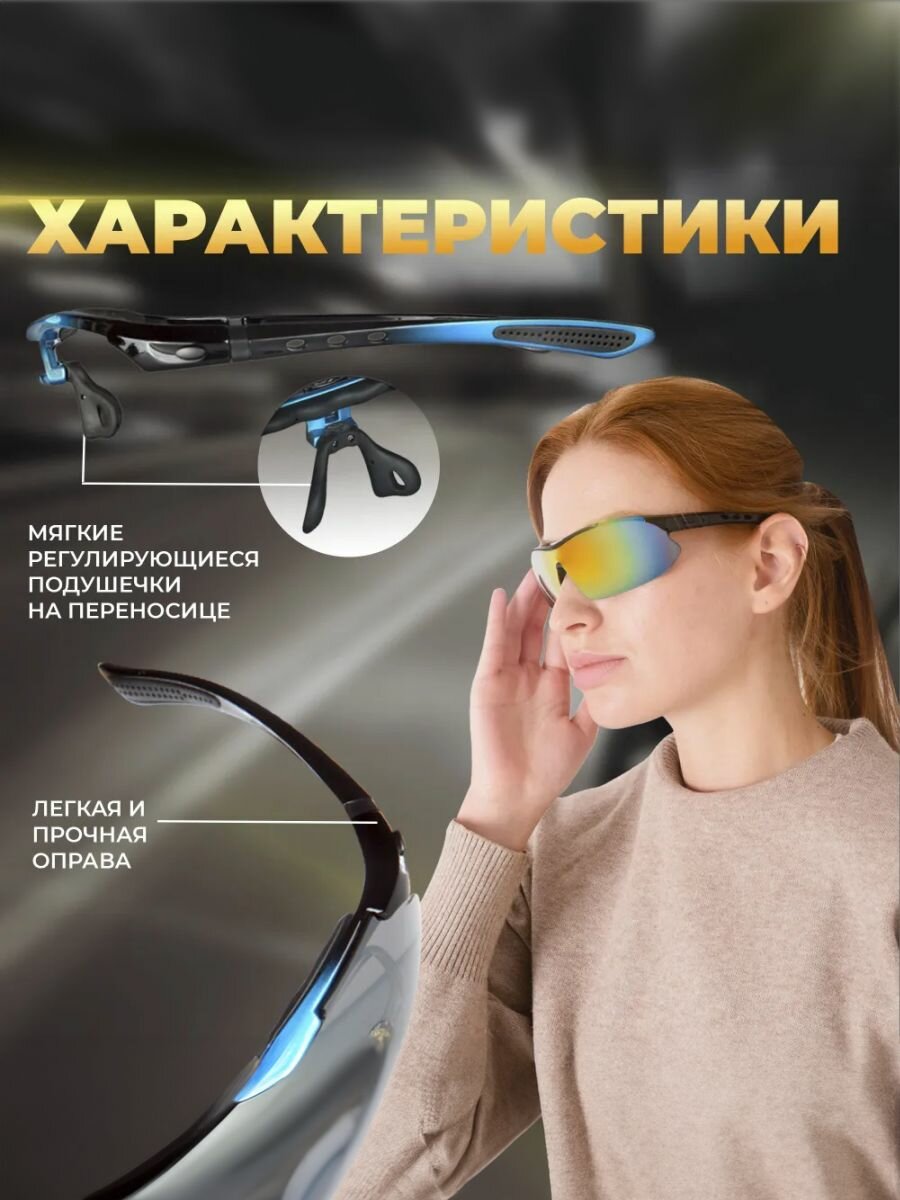 Очки спортивные для вождения, спорта, рыбалки 3 в 1. Антифара, солнцезащитные, поляризационные со сменными линзами