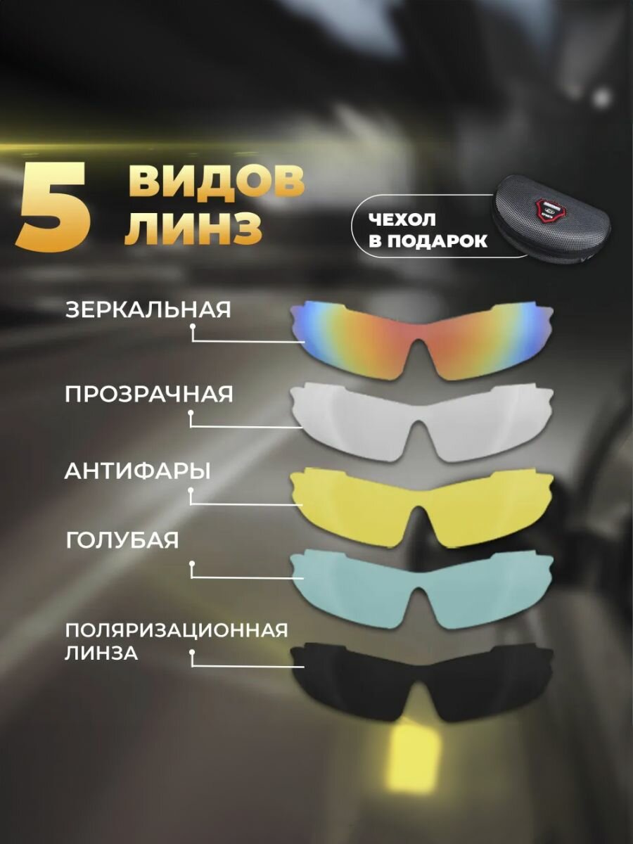 Очки тактические для вождения, спорта, рыбалки 5 в 1. Антифара, солнцезащитные, поляризационные со сменными линзами